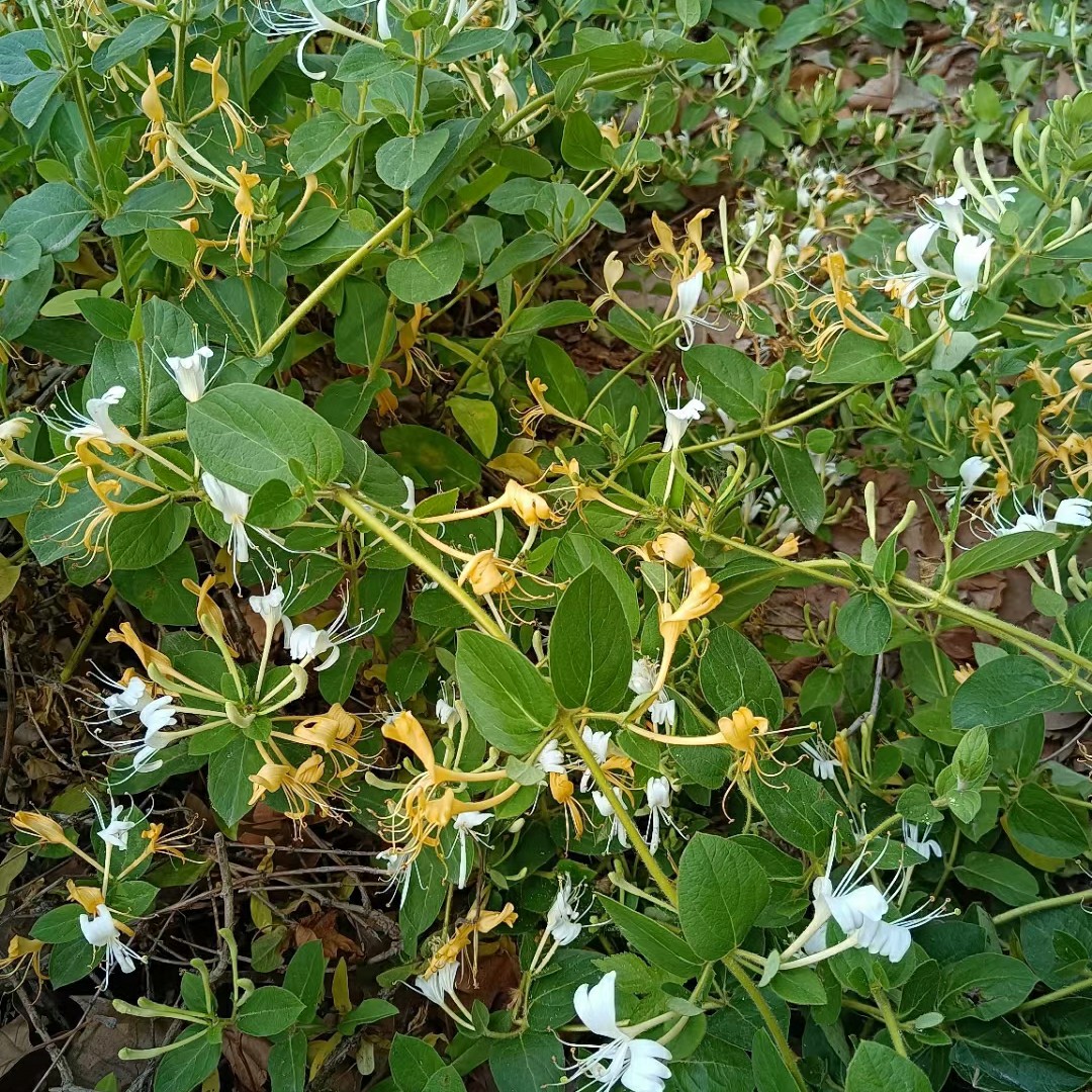 我家的苹果园里也有很多金银花,基本上都没人摘,也是图上这样都很多开败了,也就是平时我妈在家有时间的时候早晨去摘一点自己泡水喝,去年的时候晒了一点,在塑料袋里面由于潮湿都长毛了。