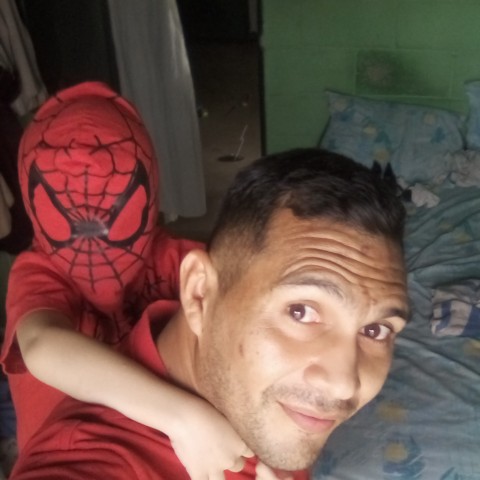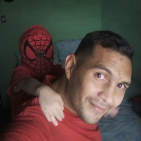 buenas tardes amigos de whereIN hoy luego de cortarle el cabello a mi hijo me pidió vestirnos de Spiderman como yo no tengo disfraz me puse una playera roja y el su disfraz de Spiderman acá les dejo unas fotos jugando en nuestro cuarto veamos que les parece