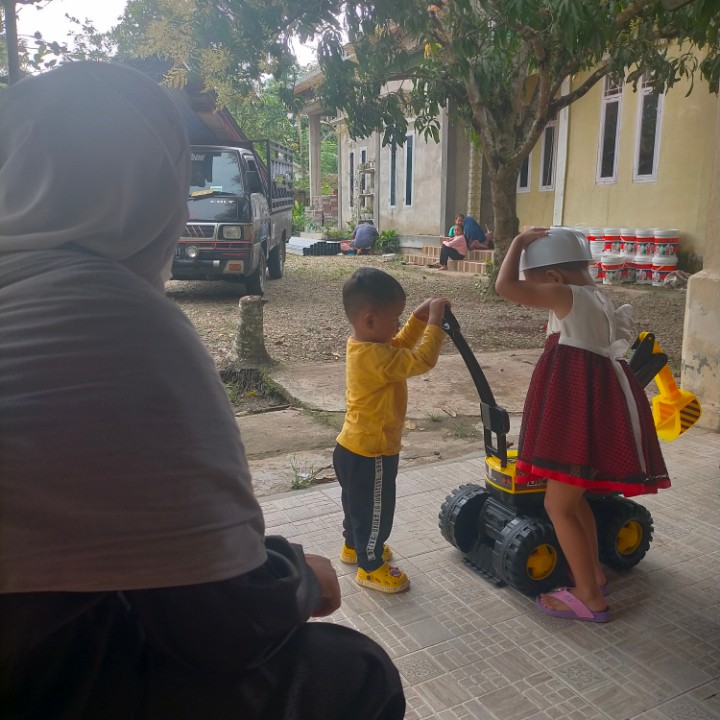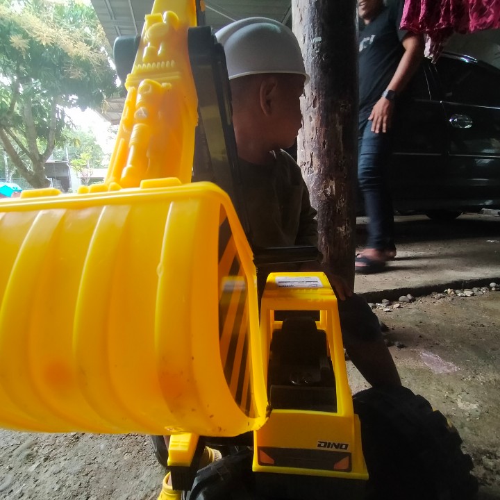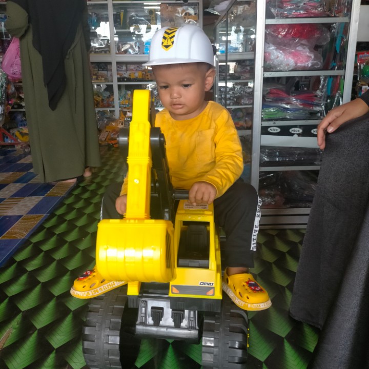 Sesampainya di toko mainan anak-anak, ternyata dek Adam melihat mainan kesukaannya yaitu mobil Beko.