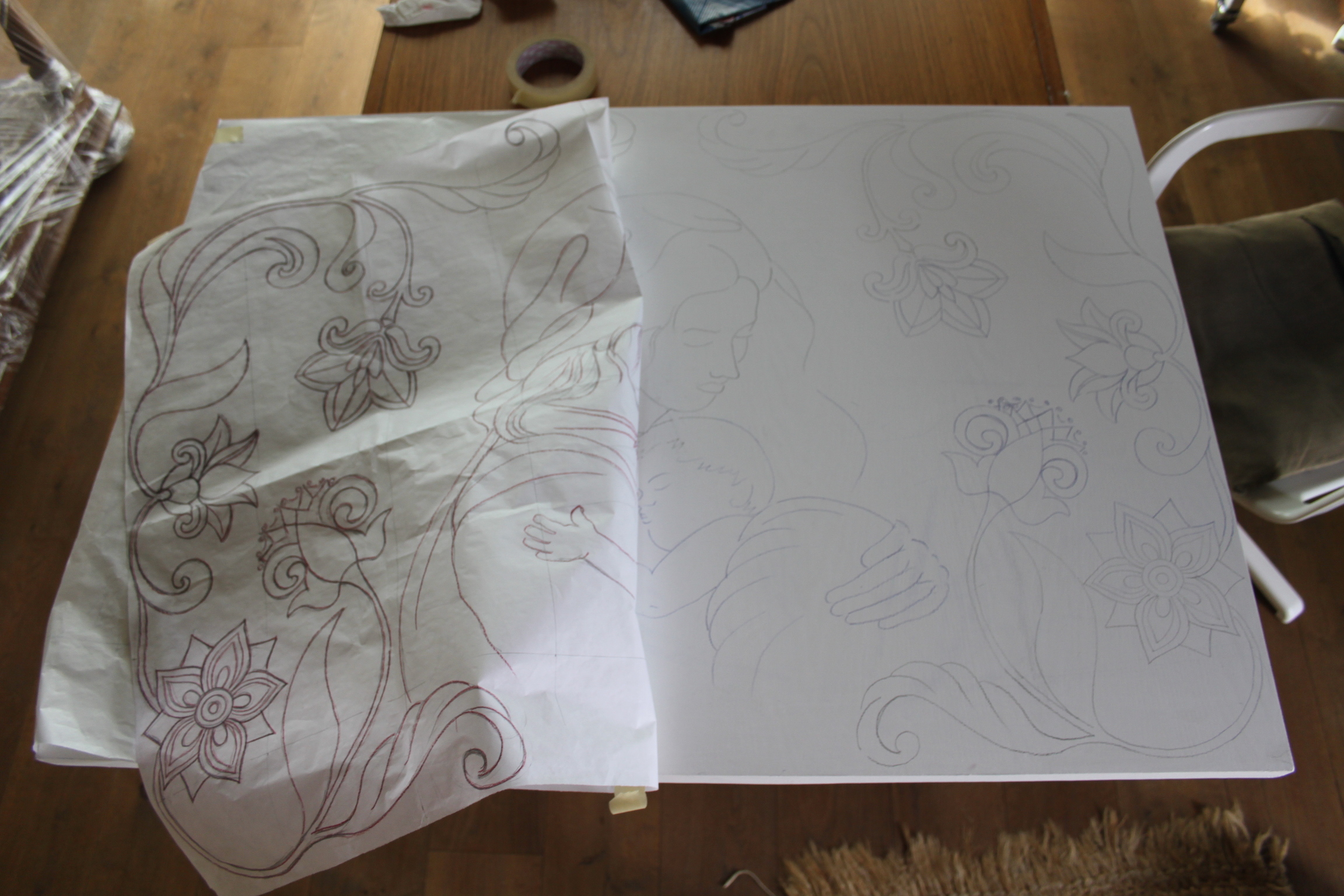e l’ho trasferito sul pannello di legno con carta carbone.