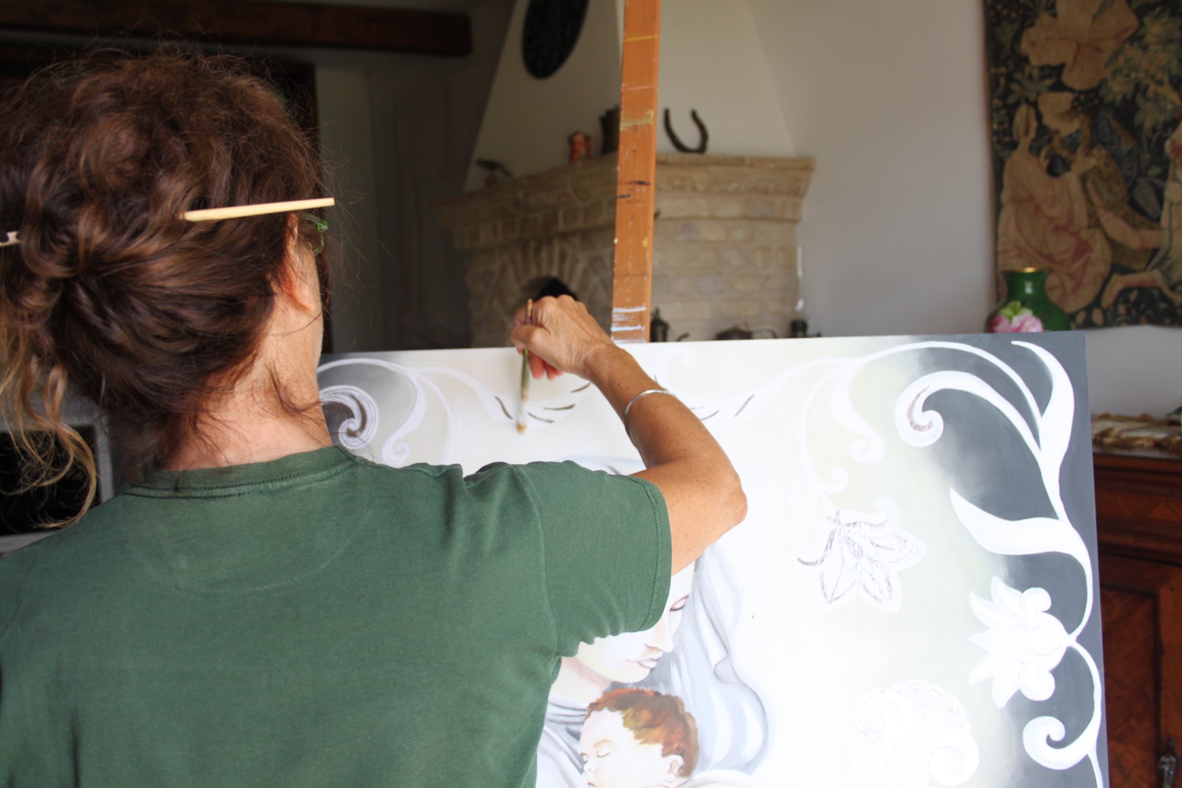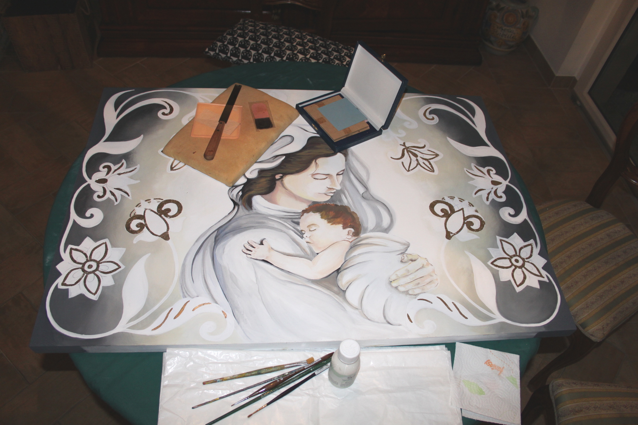 Ho iniziato a dipingere con colori ad olio il volto e i capelli della Madonna.