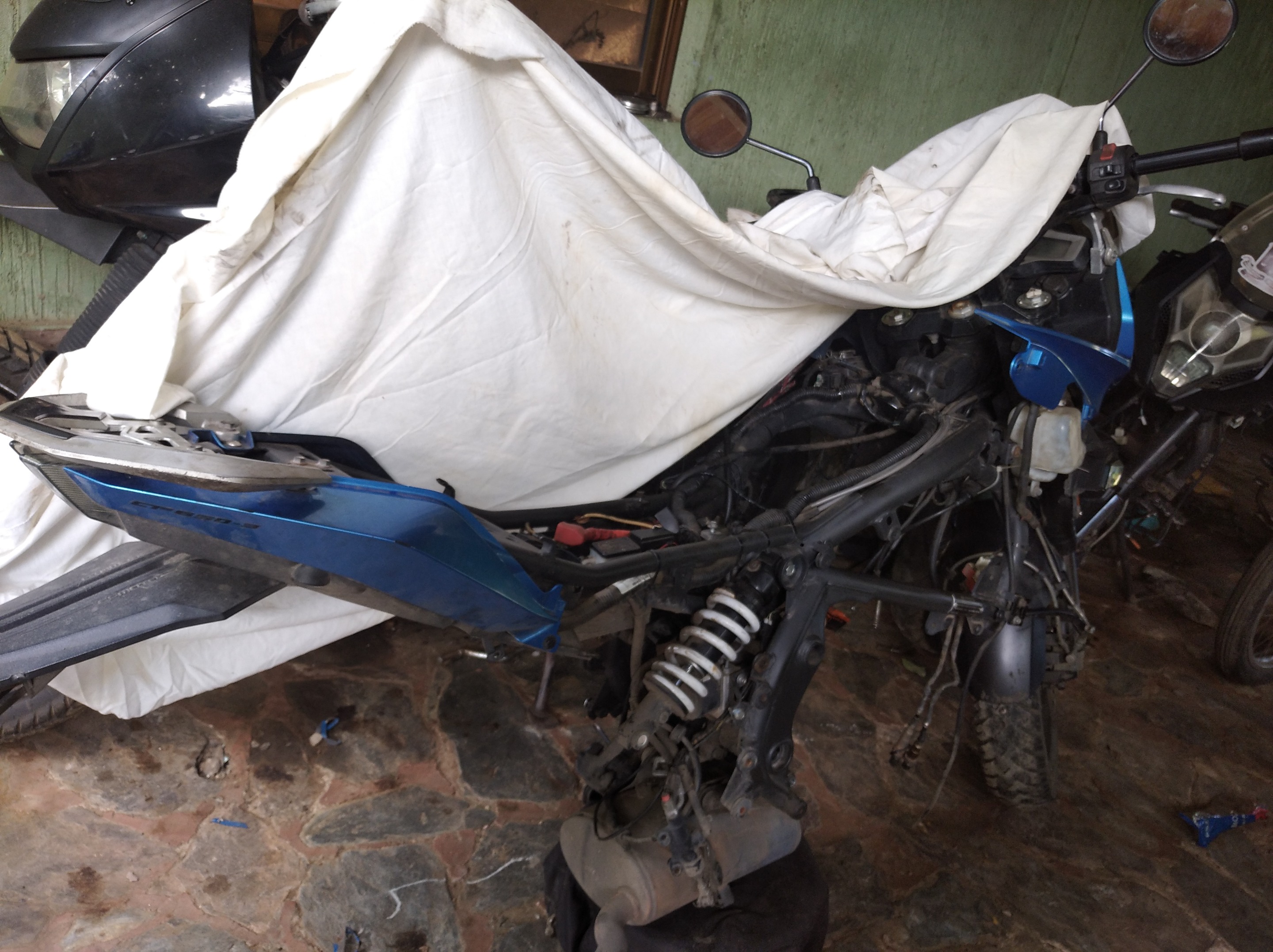 La moto, toda desarmada. Foto capturada por mí con Celular Xiaomi Redmi 8.