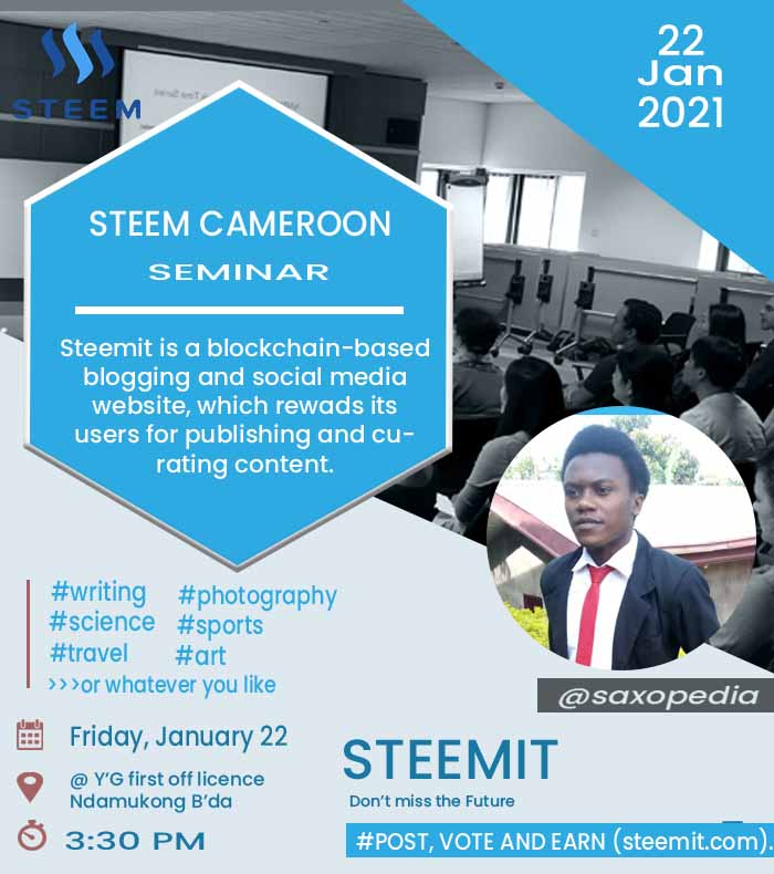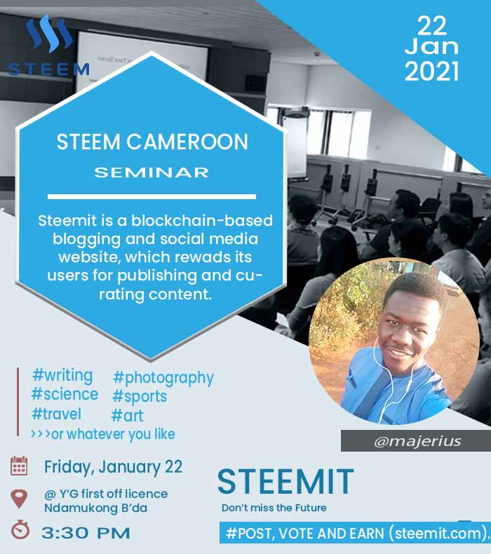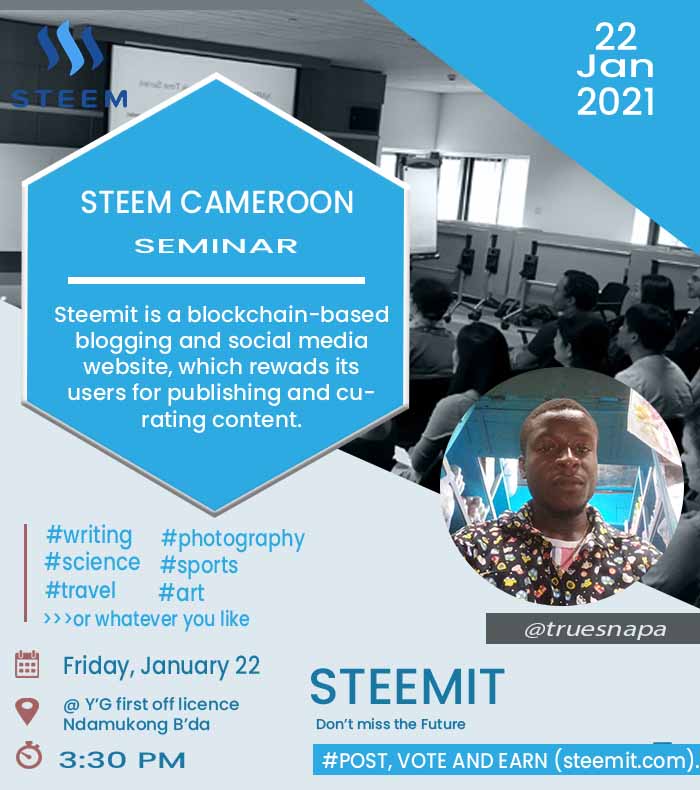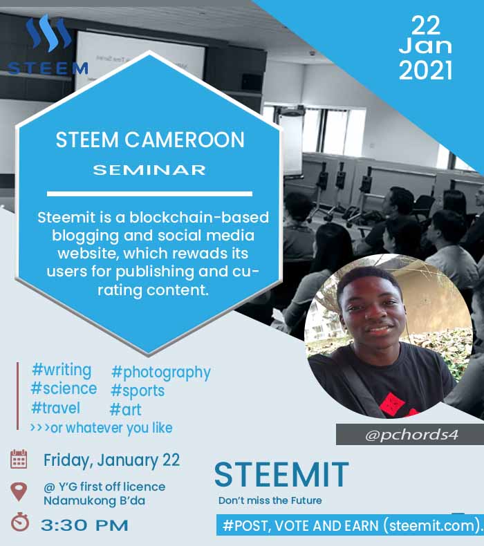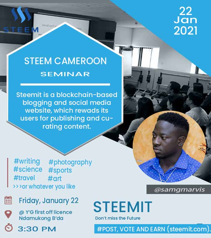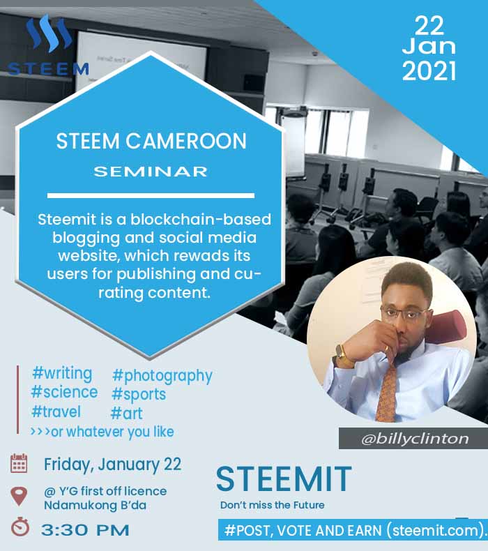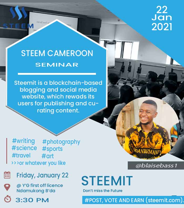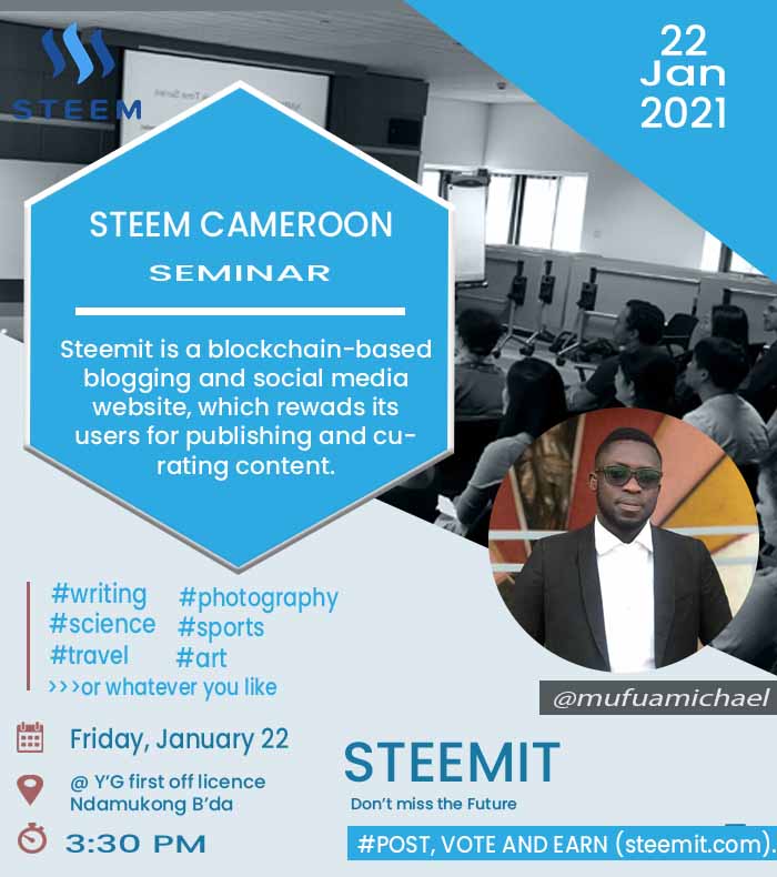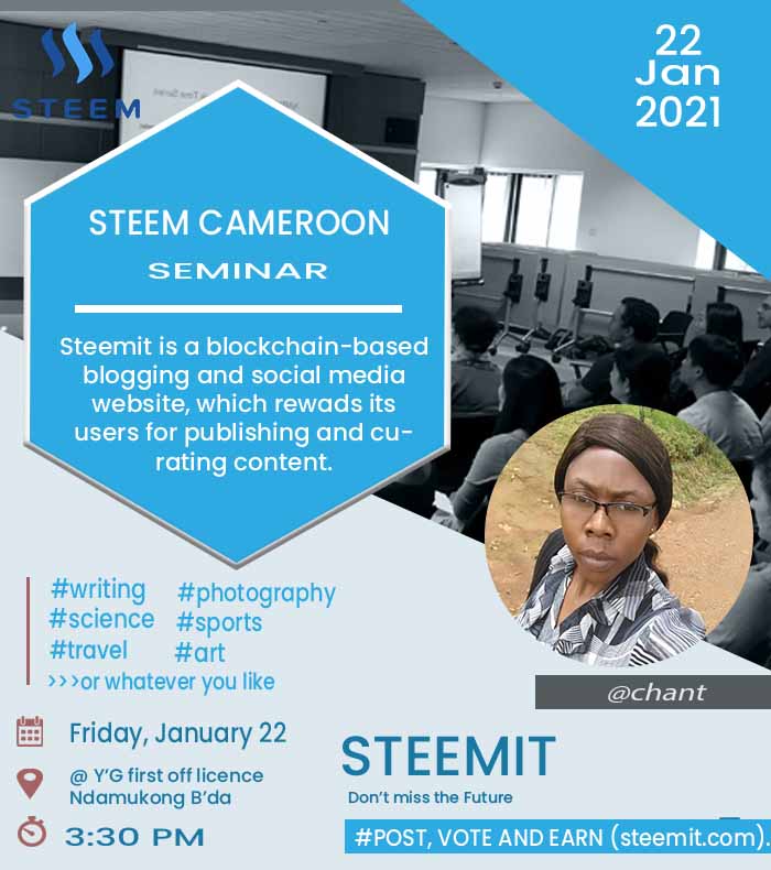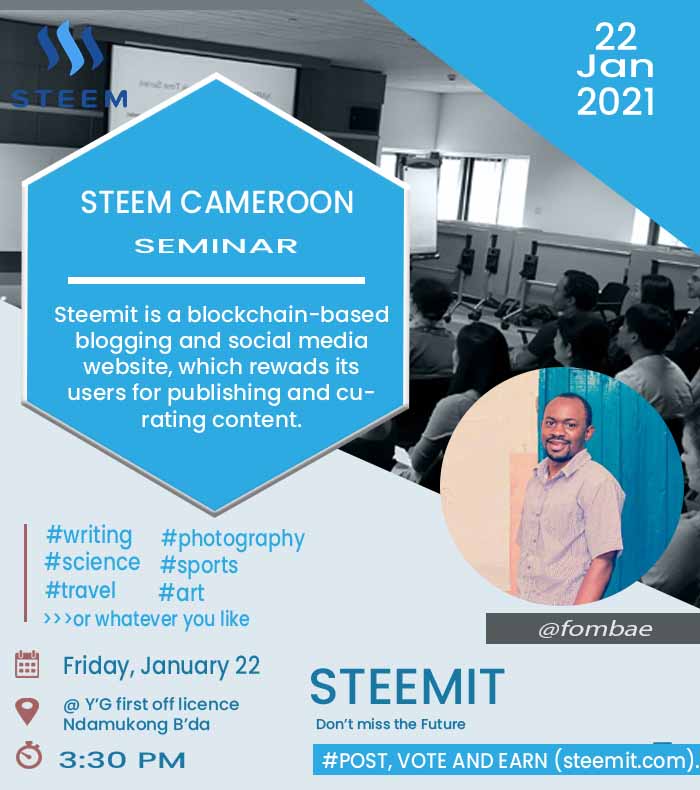 We very much expect this seminar to be a turnaround for steem in Cameroon thats why we have decided to engage doing some publicity as days passes by.