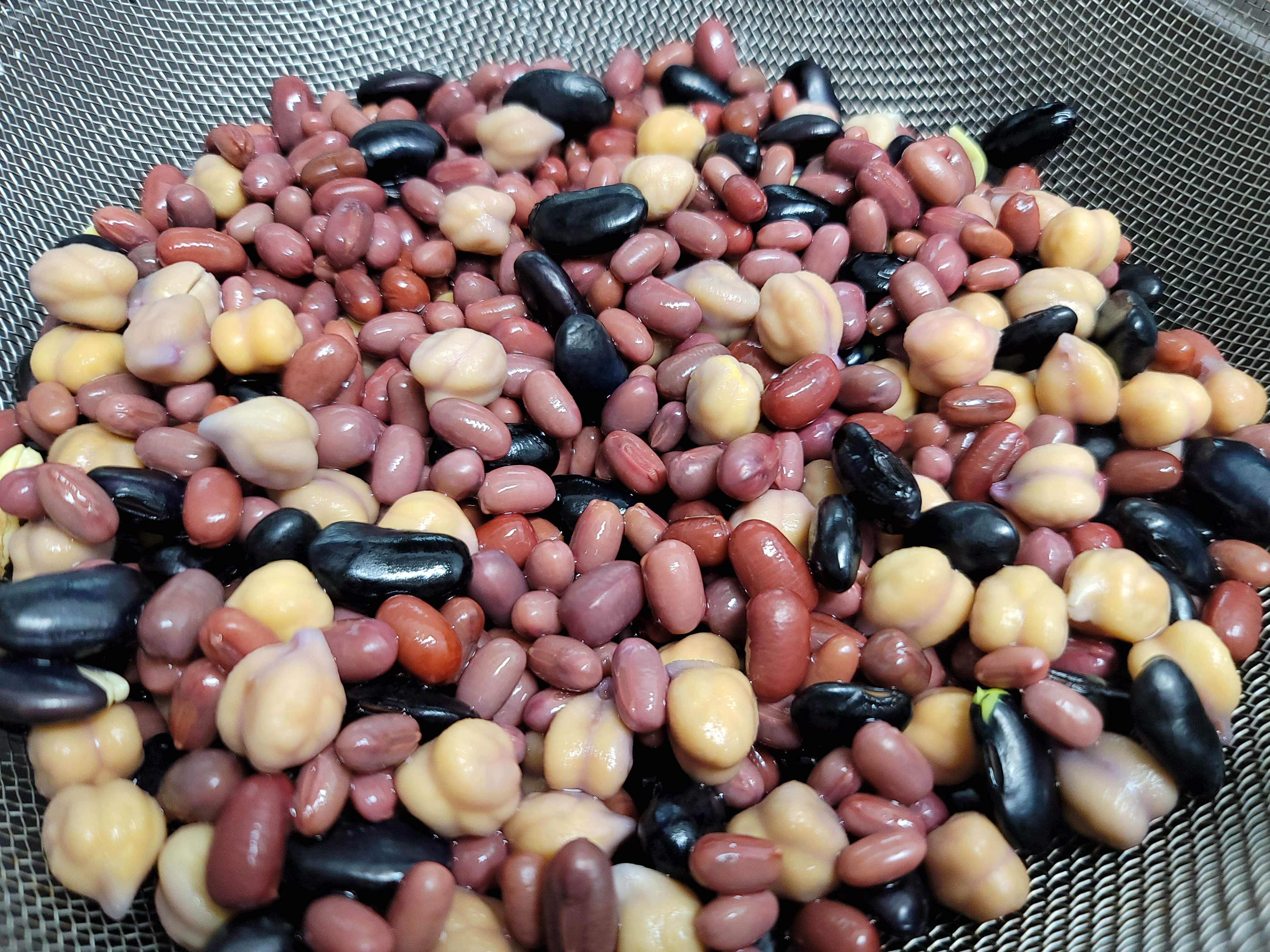 어제밤에 말린 나물들, 콩, 팥을 불리고, 삶았어요.