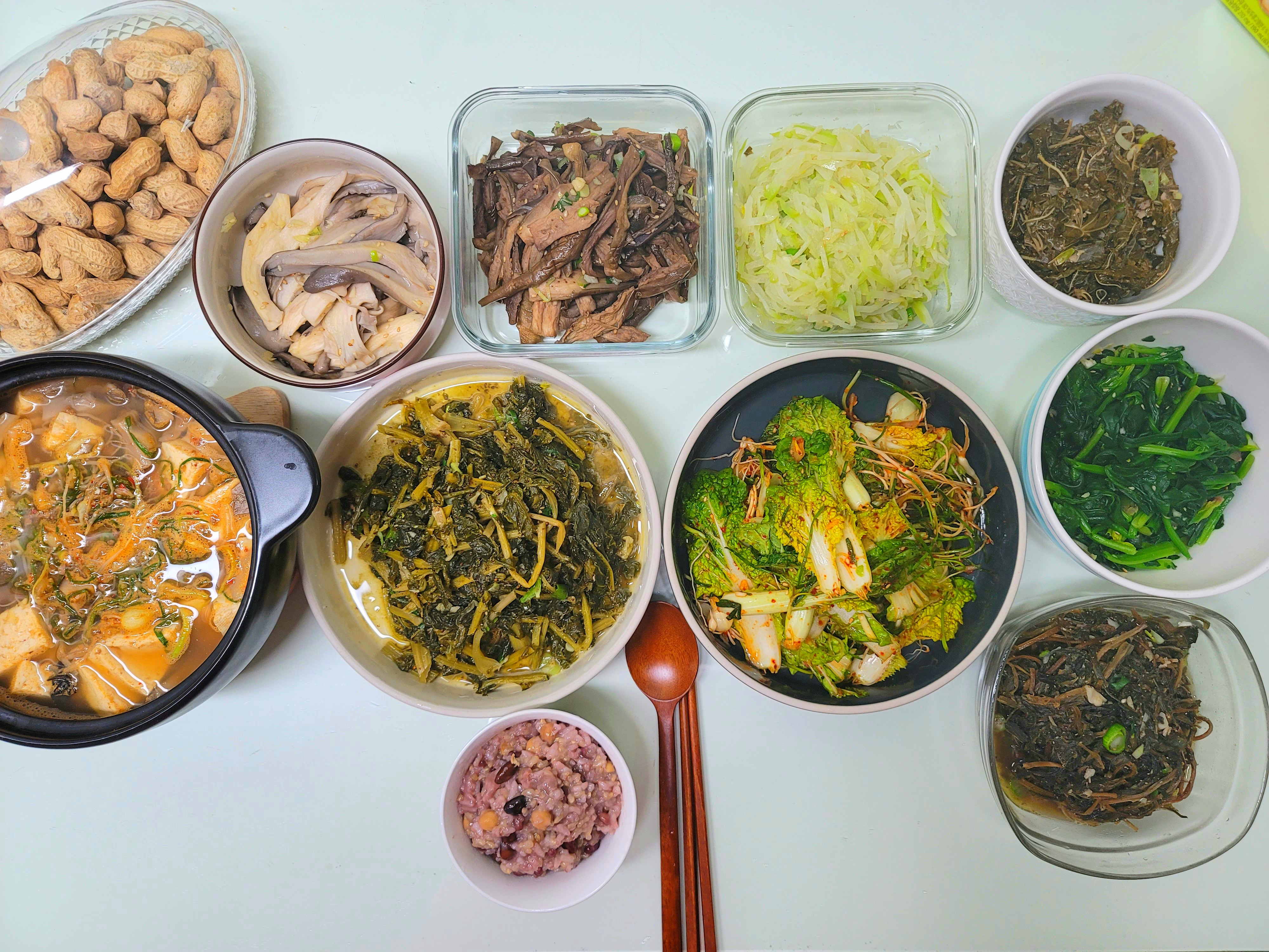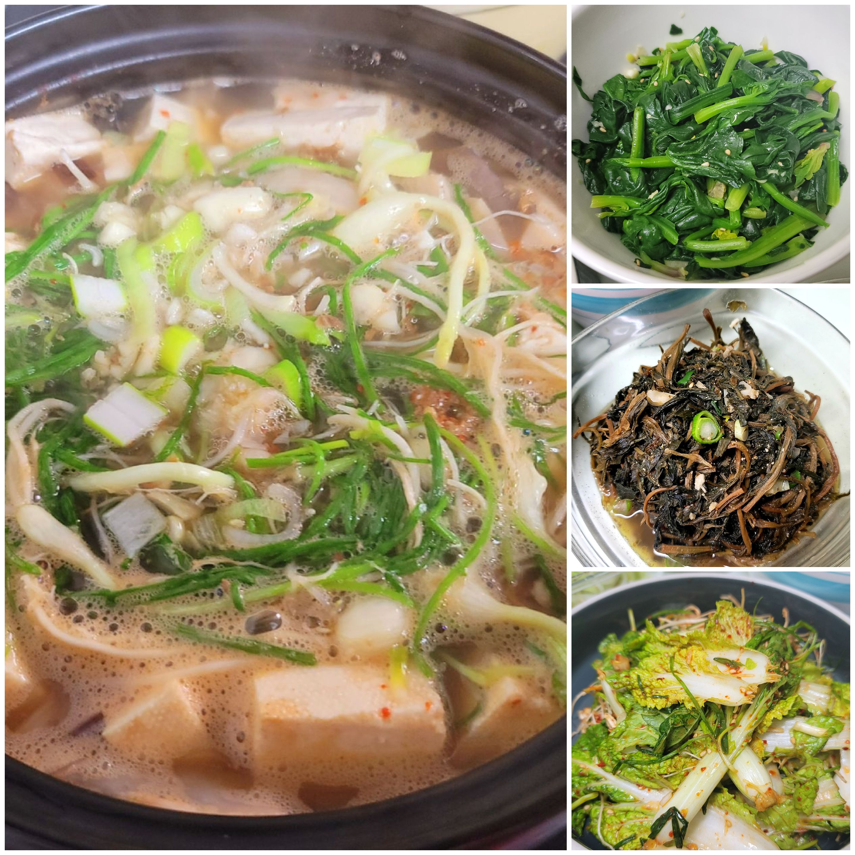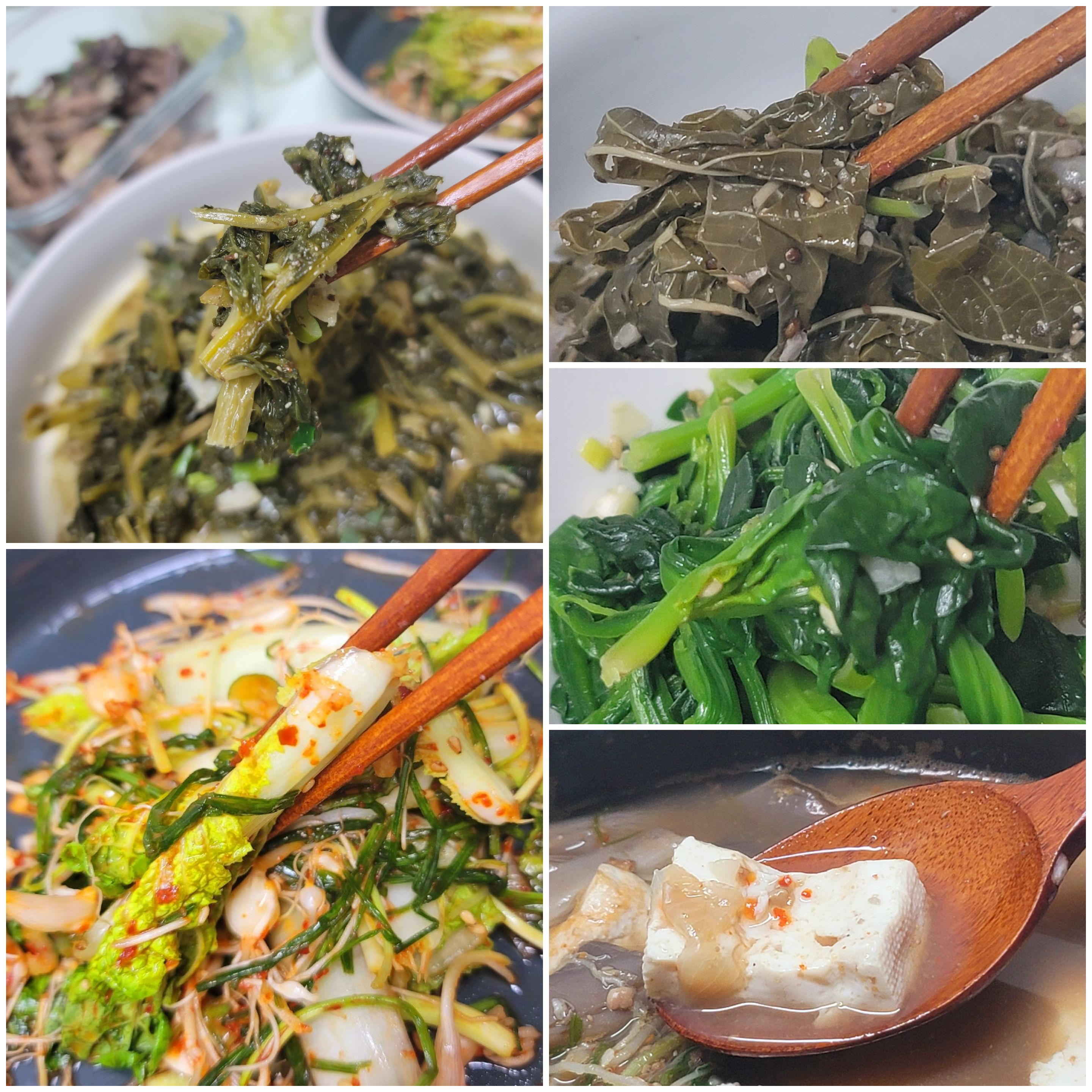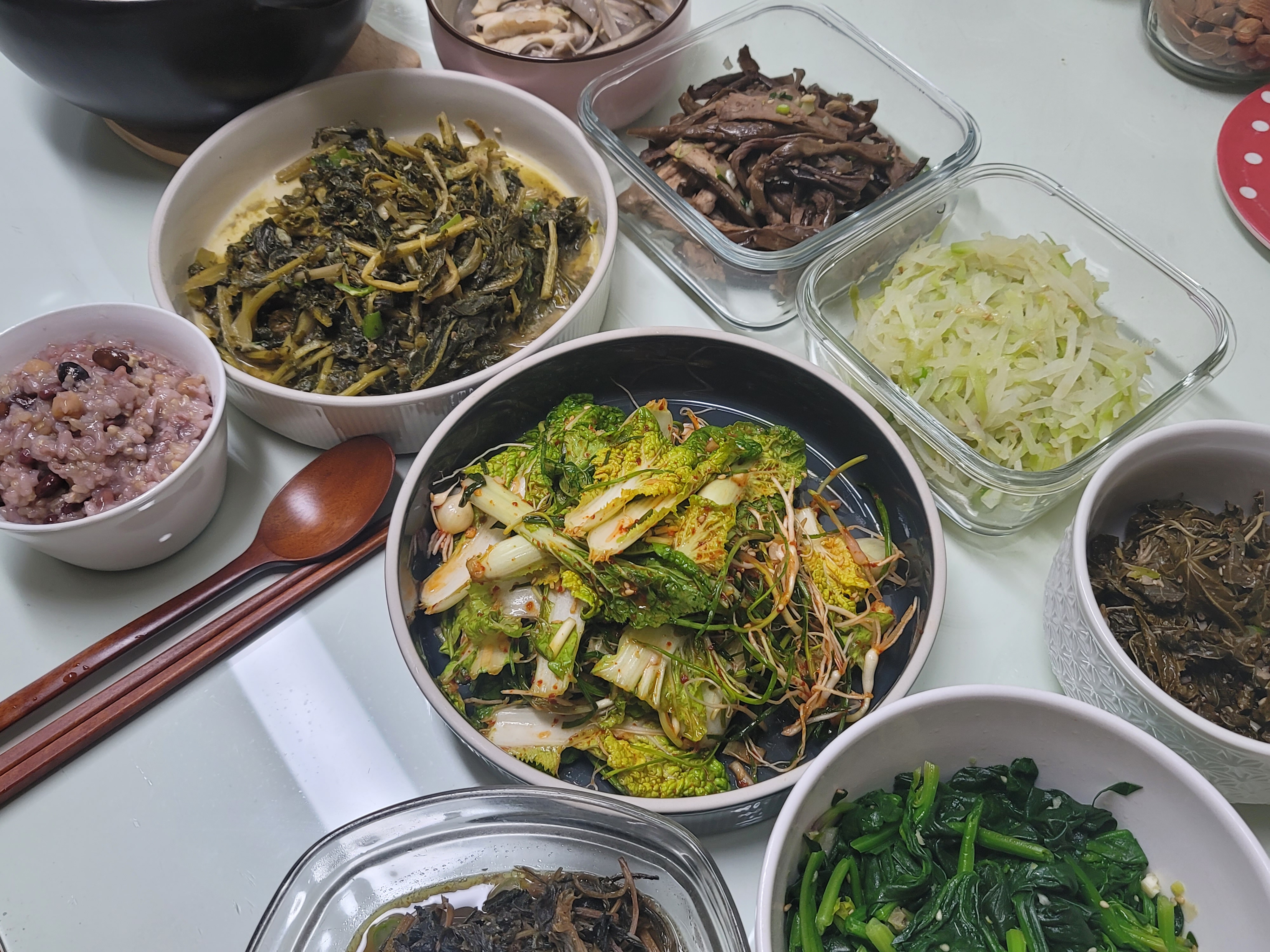 오늘 오전엔 준비된 재료로 나물을 볶고, 무치고 혼자 난리북새통이었답니다.
