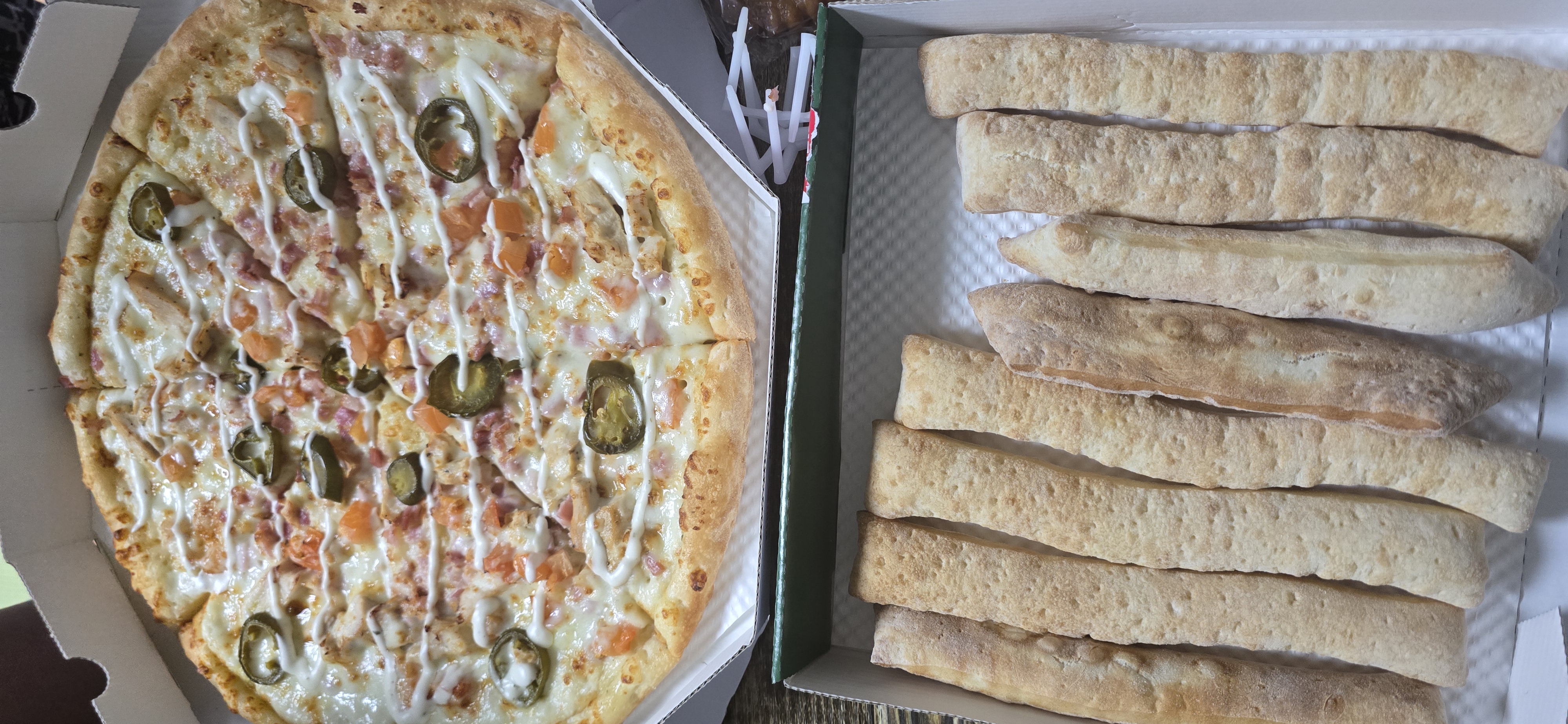 피자bluesky81 (70)in Avle 여성 육아 • 4 days ago 남편이 피자를 시킨다고 해서 그러하고 했어요. 토마토소스를 바르지 않고 시키고 브레드스틱이랑 치킨이랑 콜라까지 시켰네요. 요즘 저는 빵보다는 밥이 좋은 것 같더라구요. 각각 한 조각씩 먹고 콜라만 여러번 따라마셨네요. 애들도 많이 먹지는 않네요. #kr #momscafe #krsuccess #pircoin #avle-steem