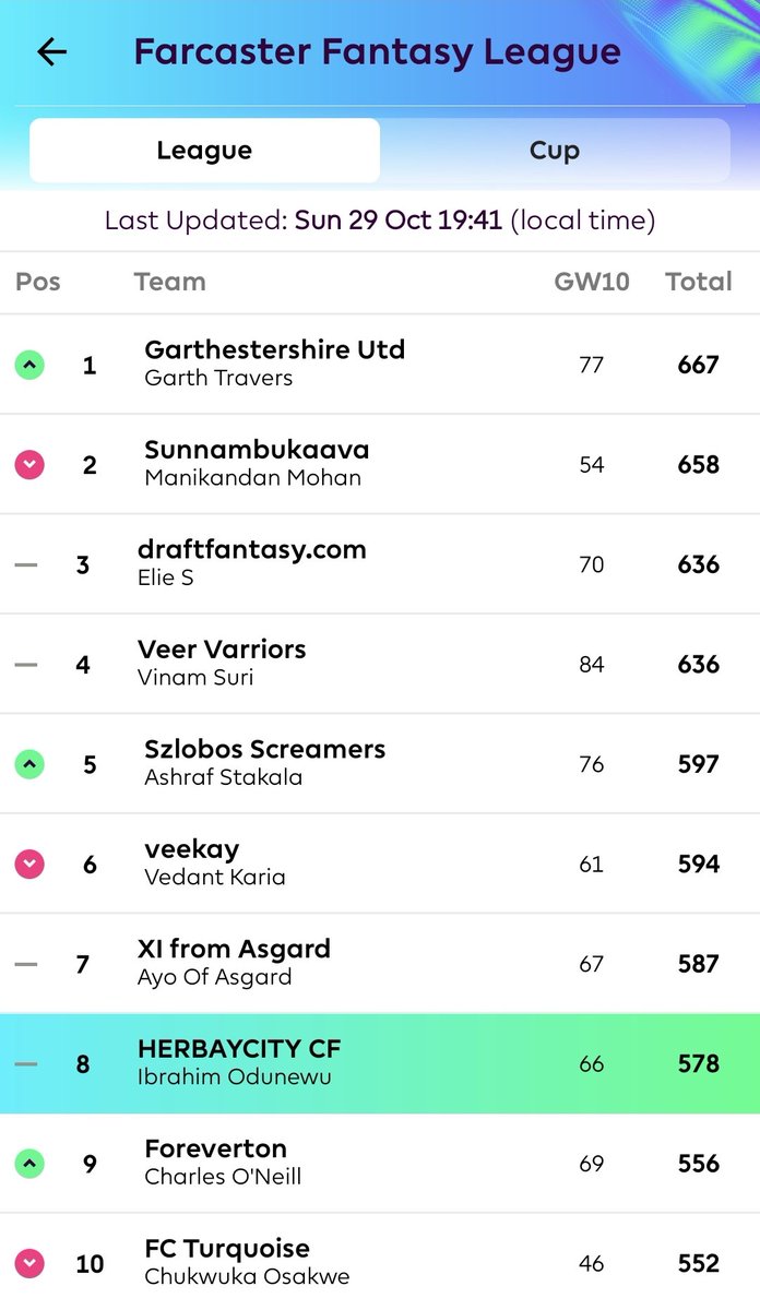Recorded 66 points in the weekherbaycity24 (58)in #hive-346066 • 2 years ago Recorded 66 points in the week 10✅️ Now ranked 8th position in my first week of the farcaster fantasy league. #iweb3 #Nerc20 #iweb3 #Nerc20