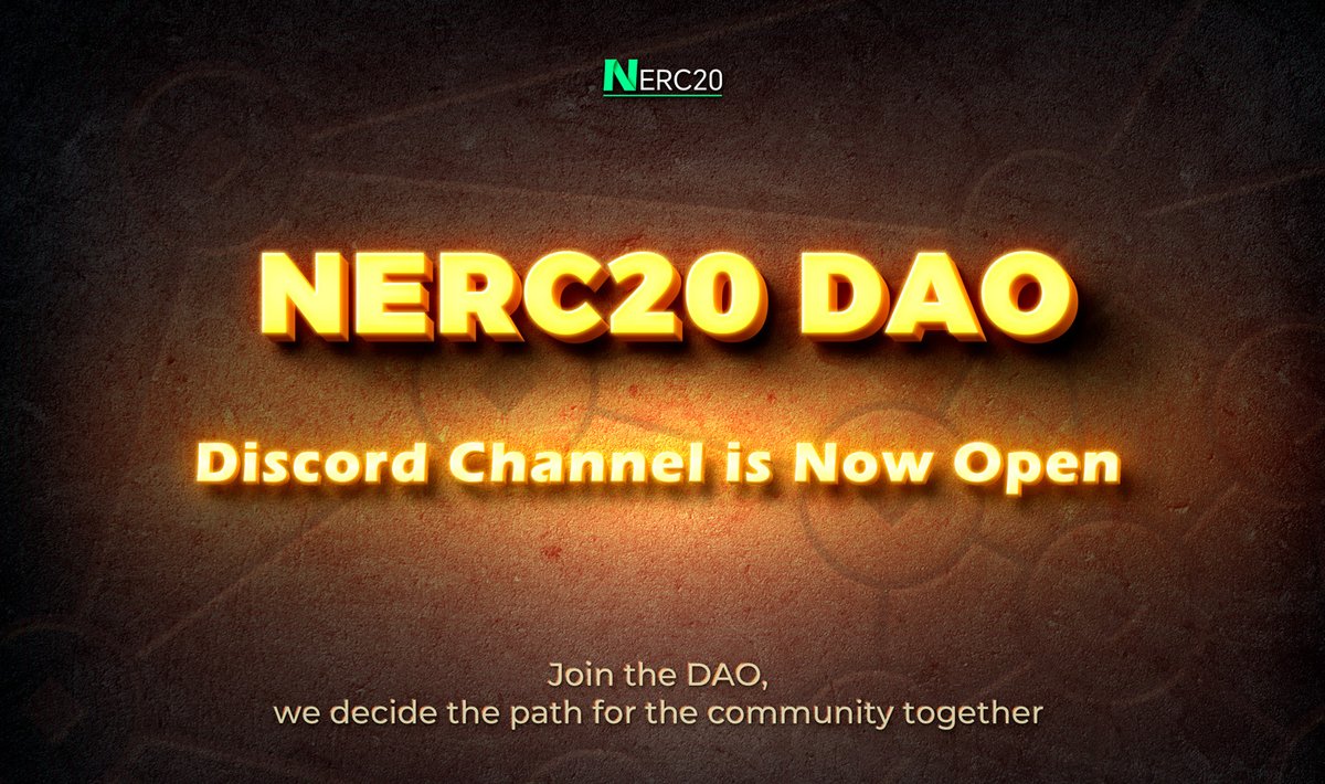 Join the NERC20 DAO Discord channel ⤵️ https://discord.com/invite/GFGk9cwa6m