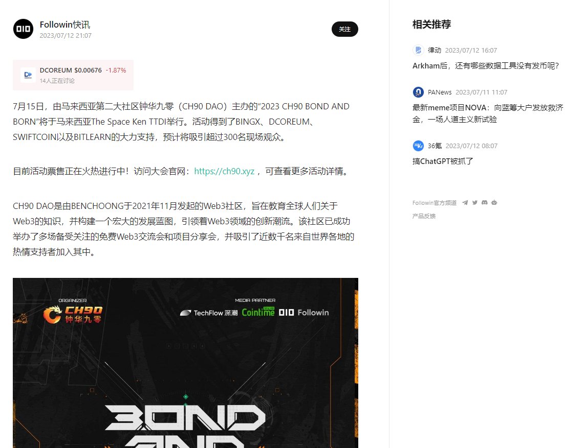 感谢followin报导了ch90接下来 7月15日的活动了