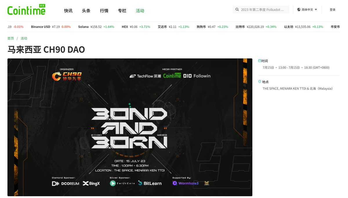 感谢cointime报导了ch90接下来 7月15日的活动了。