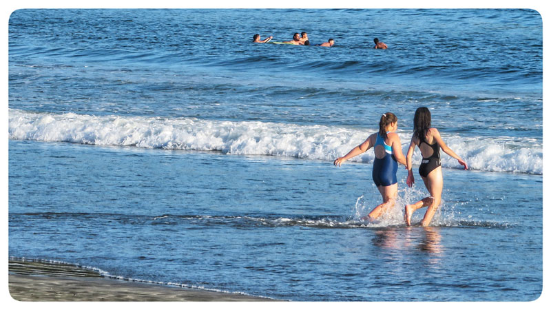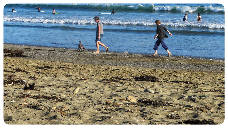 At one point @frot lazily lifted his arm and pointed his camera around at the sea, the surfers, the strollers, the swimmers, the boats and the dogs, and clicked a few times, so I’d have some pics for this post.