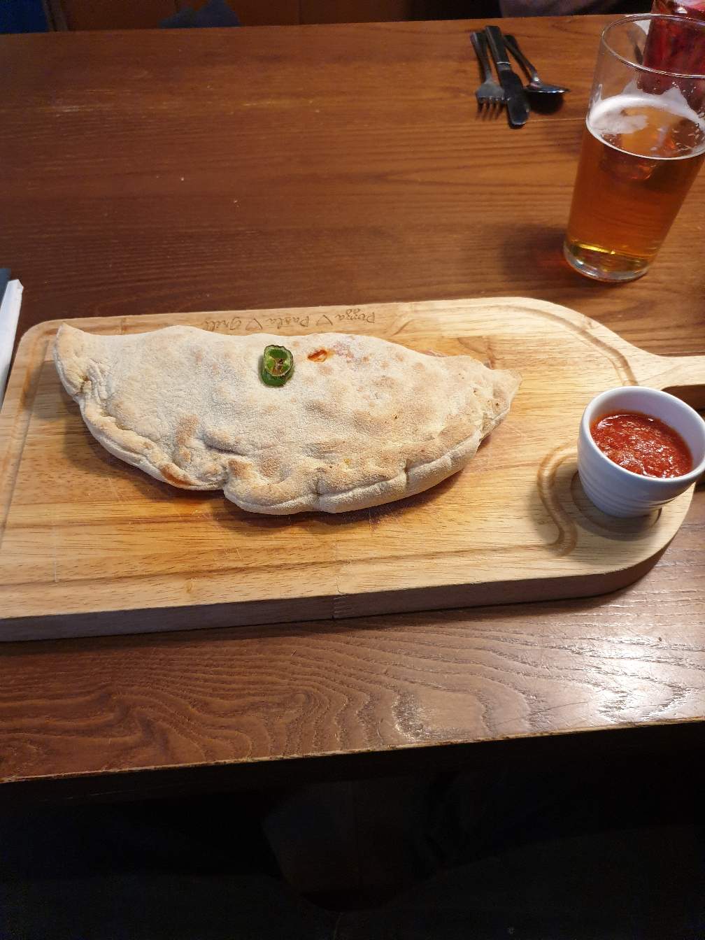 It was off to Belle Italia this evening, what a meal! The food was amazing, I had a spicy calzone and washed down with a nice pint of larger!