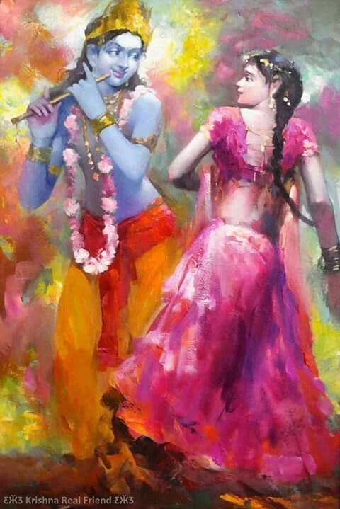 In an evil state of mind, underhanded Krishna paid attention to the counsel of mother Yashoda and connected shading on her dearest Radha's face; Making her one like himself.