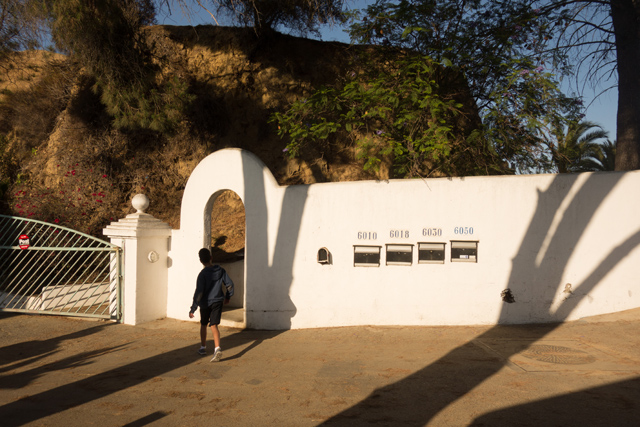 Once you've parked, making sure you're not on the side of the street where parking isn't allowed, head up to the top of Deronda, pass under the white arch and start your hike up. Be sure to go to the bathroom and stock up on water before you head up, as there is no development in this part of Griffith Park. I personally recommend walking up the paved road (Mt. Lee Drive) all the way to the top of Mt. Lee. Aside from a 360 degree view of Los Angeles and The Valley, you'll get the unique vantage point of looking down on the back of the Hollywood sign. If you're just there for some quick pictures, saunter your way up the dirt path that branches to the left once you're at the foot of Mt. Lee Drive.