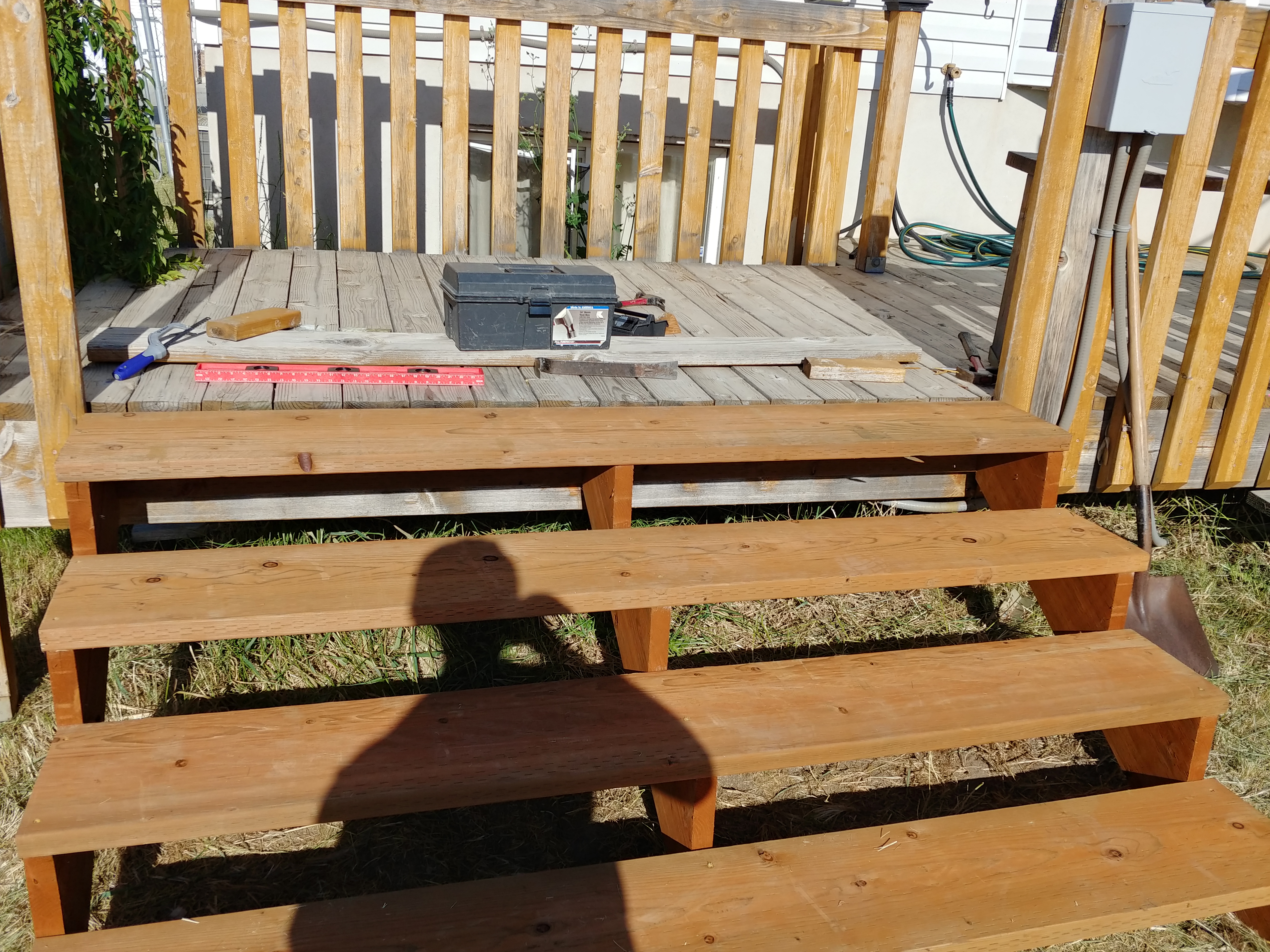 It's satisfying to get these projects up and running, but it's also hard to get the motivation to do so sometimes. Sometimes it takes the wife nagging a bunch to get them done. Sometimes it just takes my brain nagging a bunch to get them done. For example, my wife is part of this "game" group that gets together once per month and plays bunco. It was her turn to host and she wanted to host outside on our deck. This meant two things. First, I had to build a new set of stairs for the deck. Second, I had to rig up some lighting out back. I didn't have much time to do both. Unfortunately for her, I was only able to get the stairs up before her friends started arriving. Fortunately for me, the sunlight lasted long enough for her game to complete.