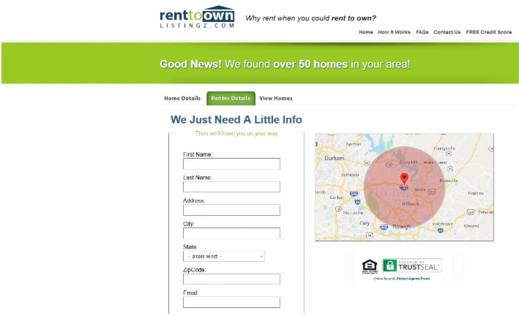 Good news we found over 50 homes in your area RentToOwnListingz.com is the leading rent to own site. With over 2 million listings, you can rest assured you're getting the best match JUST 30s complete info click here