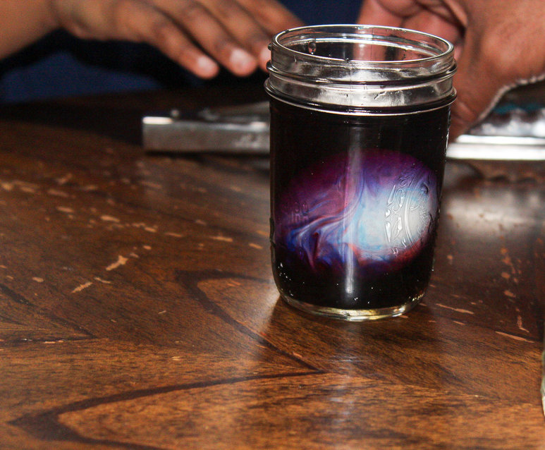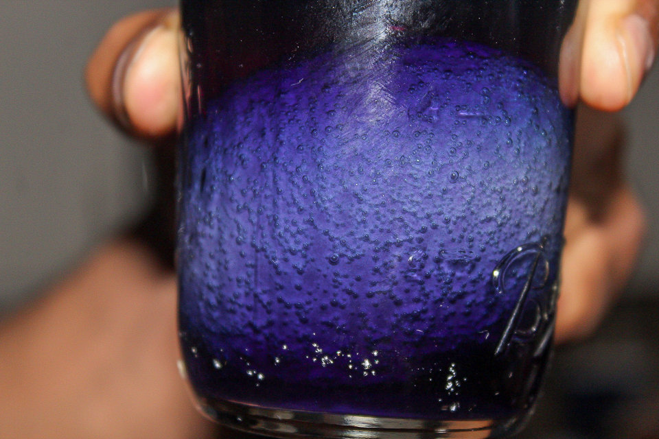 When the vinegar is dyed, the dye and the vinegar seep into the egg white, creating the color you see. The mixture made a goop at the top of the jar.