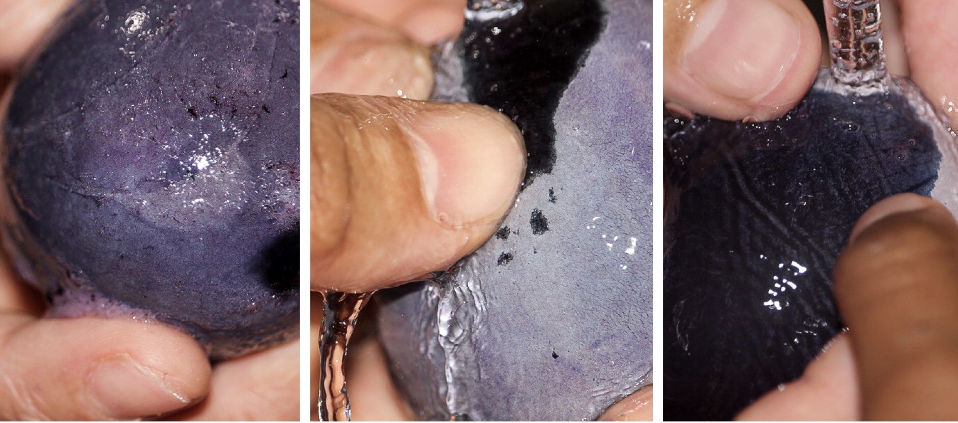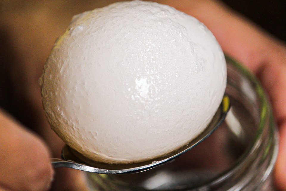 Next we ran cold water over the egg as we rubbed off the thin white layer that was left.