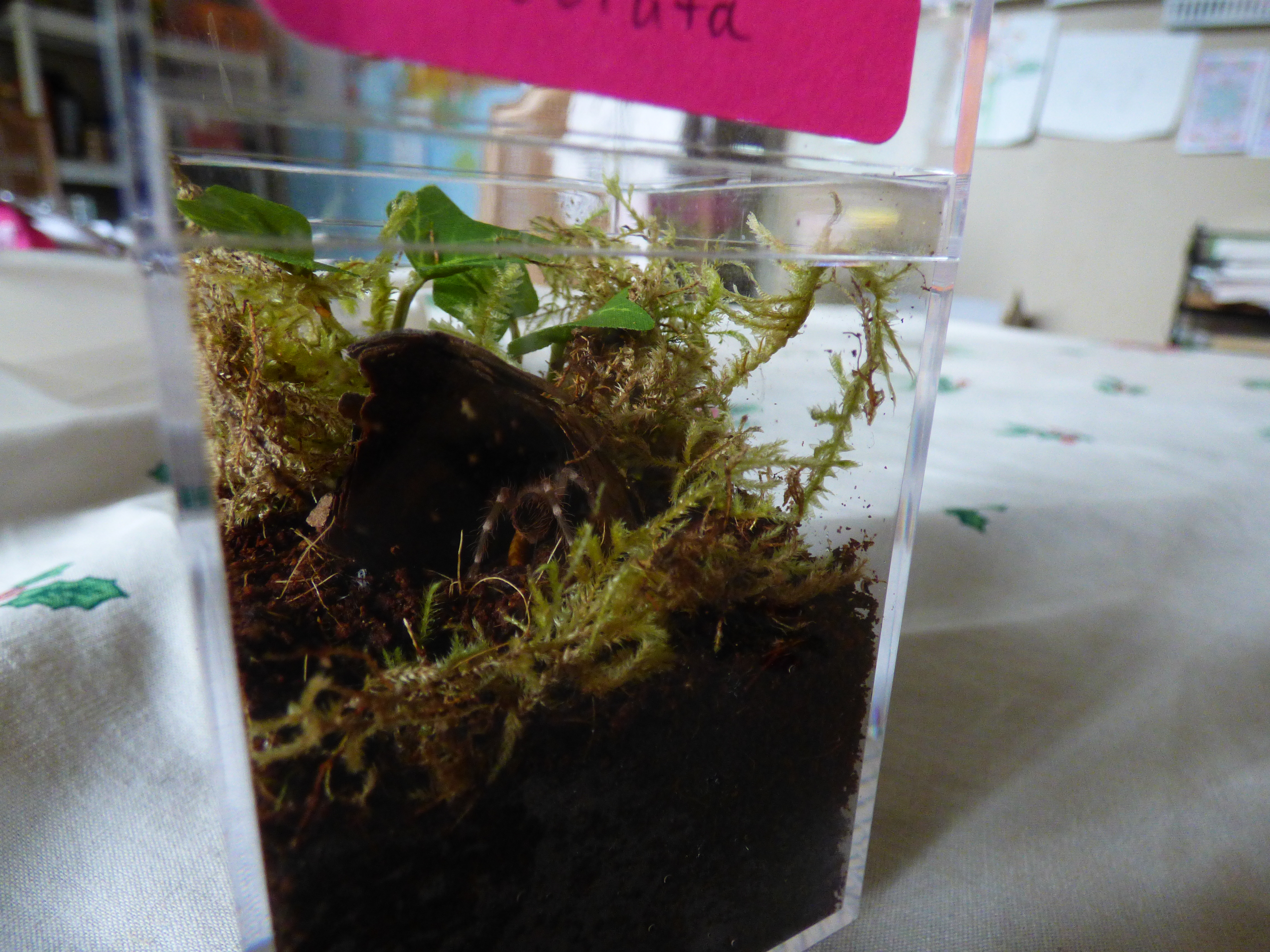 I WOULD say I'm back for real this time buuuuuut... You know me.... I tend to not come back for very long at a time... Anywho, 2020 kind of stinks, with Covid-19 and all, but, today was a great day for us! FIRST of all I made a candle for SquishySquid! And my bro made a Spider-Bot. But what I'm REALLY posting about is explaned from the beginning to the end in this story...:I was grating some beeswax from a large 4lb "beewax-wheel" (For SquishySquids candle). My bro wanted to get the mail, most of me didn't want to let him go without me (We usually get the mail together), but something made me say: "Okay" when he wanted to. after a few minutes, he came back and shouted: "THE TARANTULAS ARE HERE!!" And I must admit, part of me thought he was teasing... But I came over to him anyways, and, he was holding a medium sized white box! IT WAS THE TARANTULAS!! :D Me and my mom (We ordered them) opened it up. We were both quite nervous... We set up the enclosurs first, of course. Then SquishySquid opened up her Carabina Versicolor T. But just before she unwraped the tissue paper, I remembered that we should probably open it up over a small container in case it darts. It did. Luckily, we had the container there and we got it in the enclosure. 😅 It was a pretty blue color, and had long legs. SO CUTE.