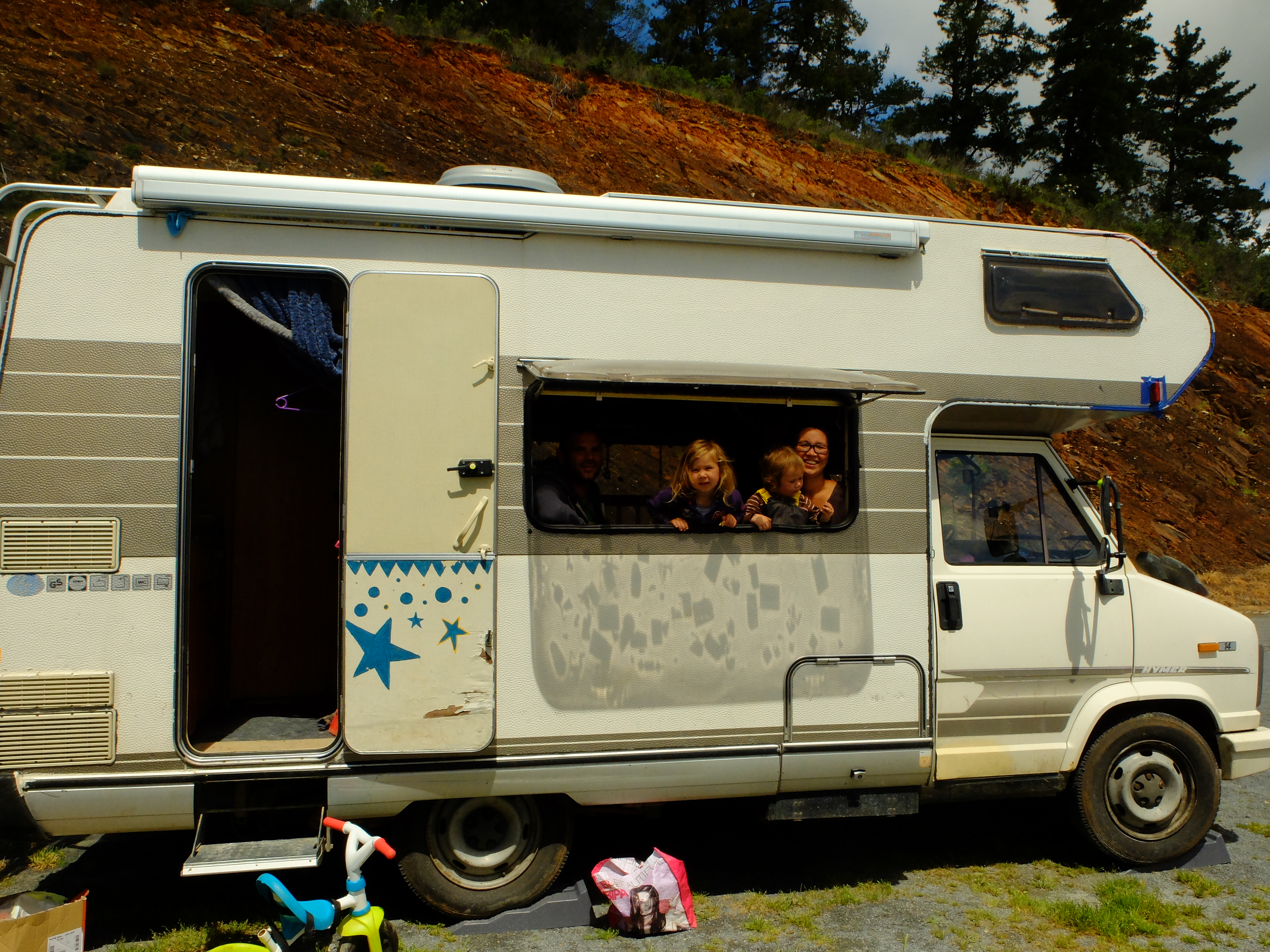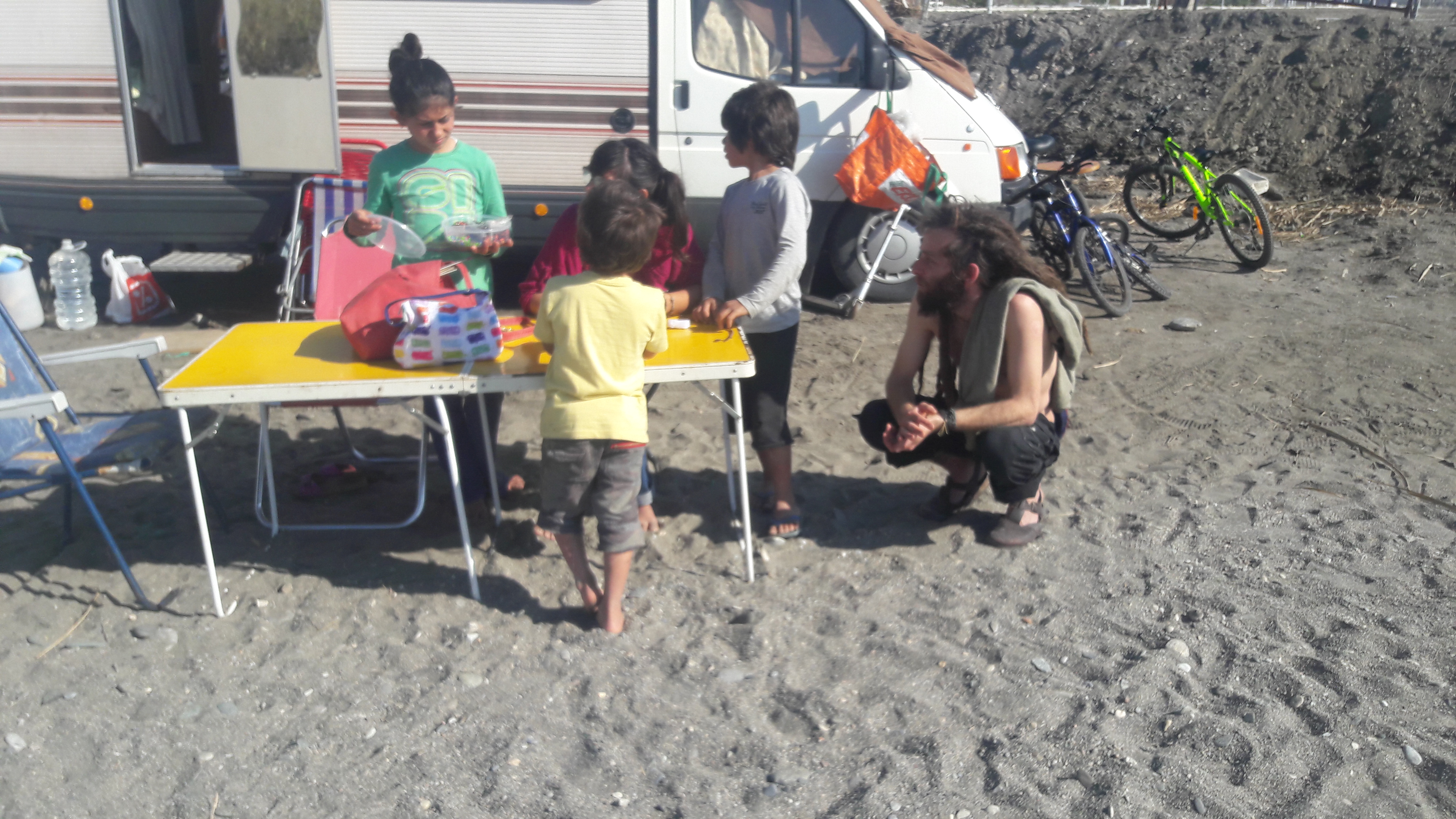 Or this Italian family of 7 in this tiny camper! (very poor phone photo of just part of the family (and Roberto) and part of camper!)