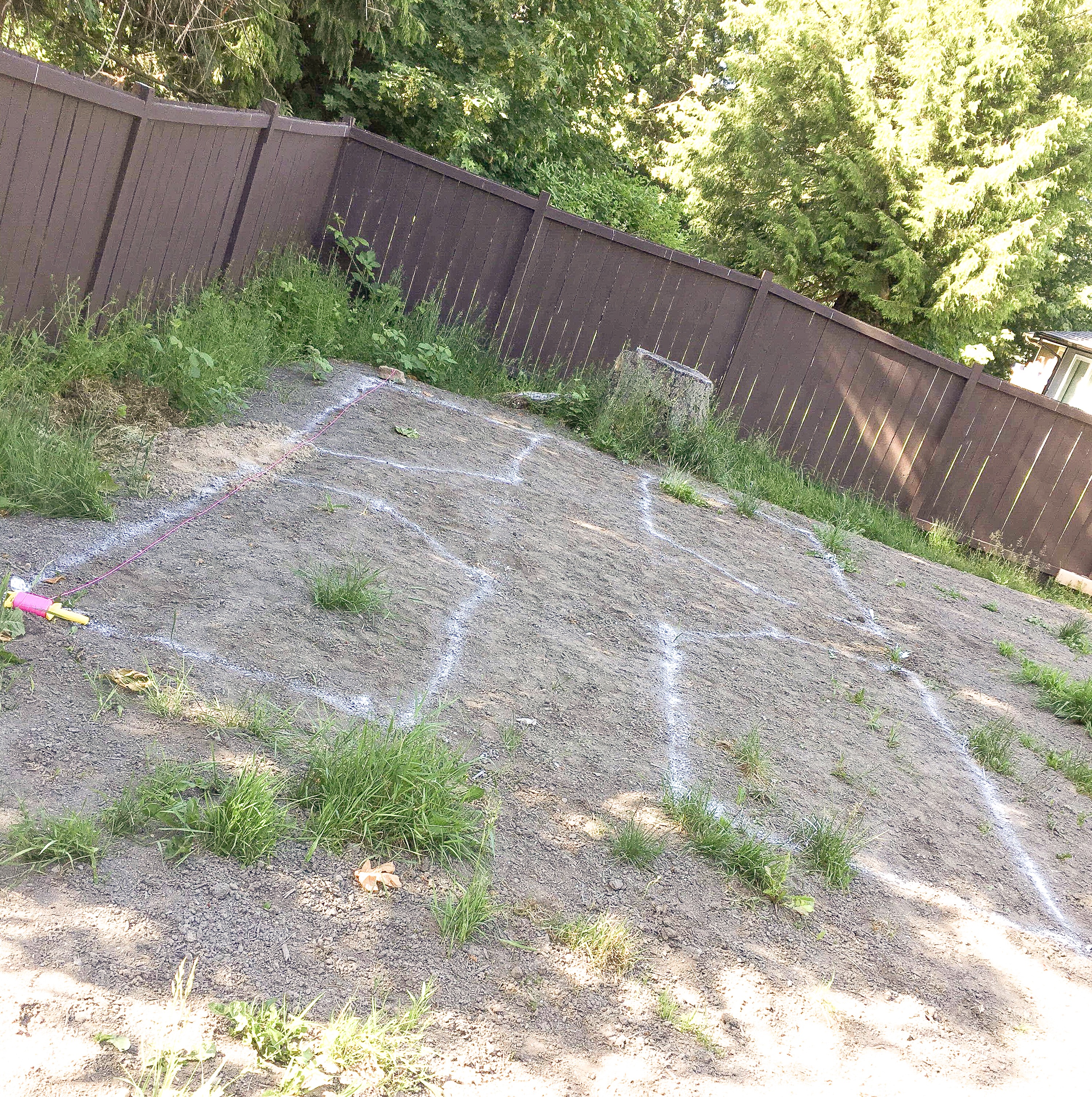 And all of a sudden, we had a very heavy planter that we needed to carry from our garage to our pre-determined garden spot outside. It was super fun carrying it, and when I say it was fun, I’m definitely lying. If you can build your planter close to where you are putting it, do it! We had to build ours in our garage because it was raining so much (welcome to Washington), but we ended up with stronger biceps because of the distance we had to carry those darn things. At the garden location, we decided to use a temporary spray paint to draw out the placement of our planters. We double checked that our planter perimeter was measured at even distances within our property line and dug six holes for the longer planter posts to fit into. We decided to pour concrete into each of these holes, so good luck to our future selves if we ever want to remove the planters! They aren’t going anywhere!