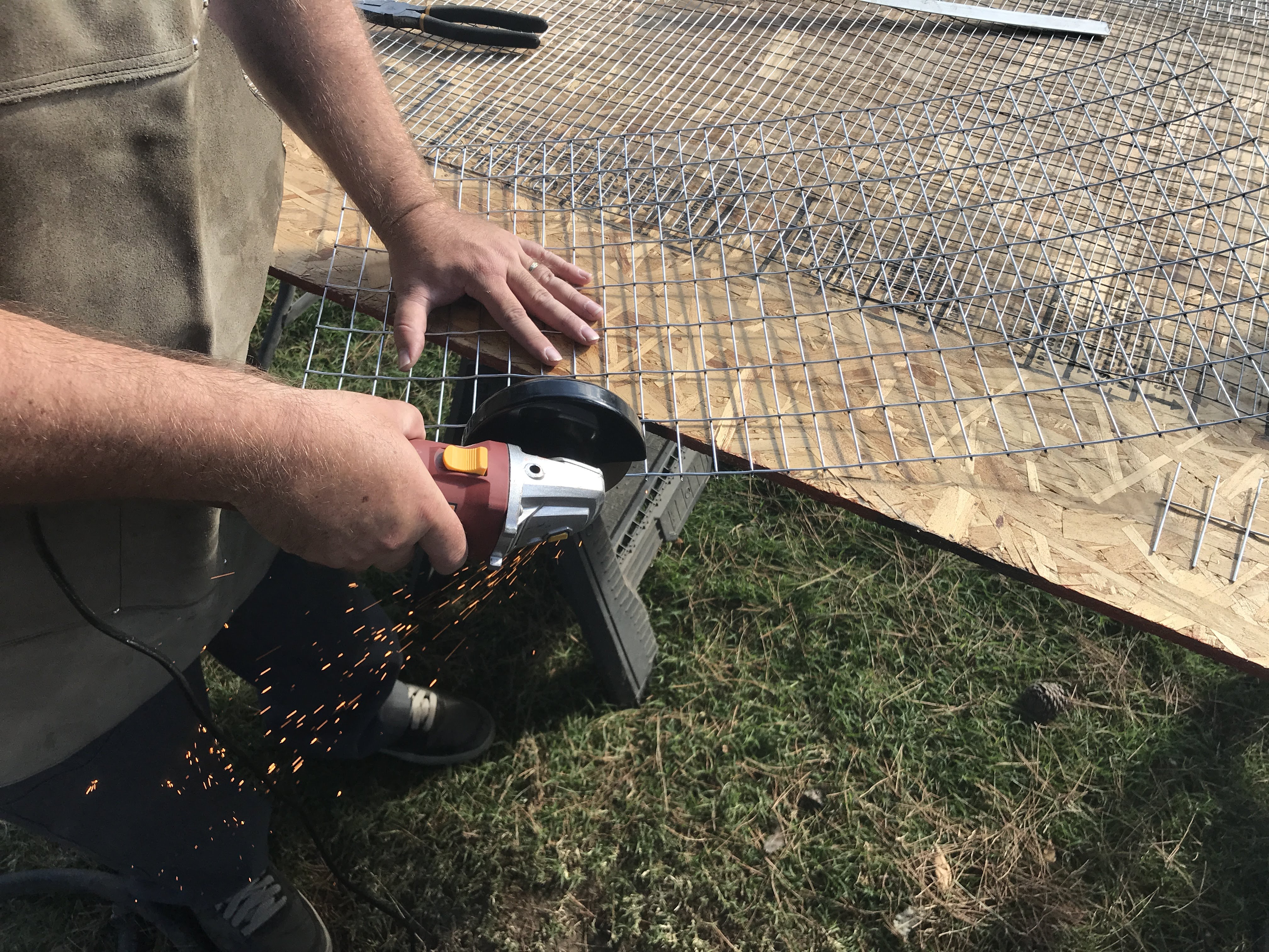 Cutting the wire leaves sharp barbs along the edge, so I use the angle grinder to clean them up. eventually we switch to just using the grinder to make all the cuts. It ends up being faster and the clean up is easier...