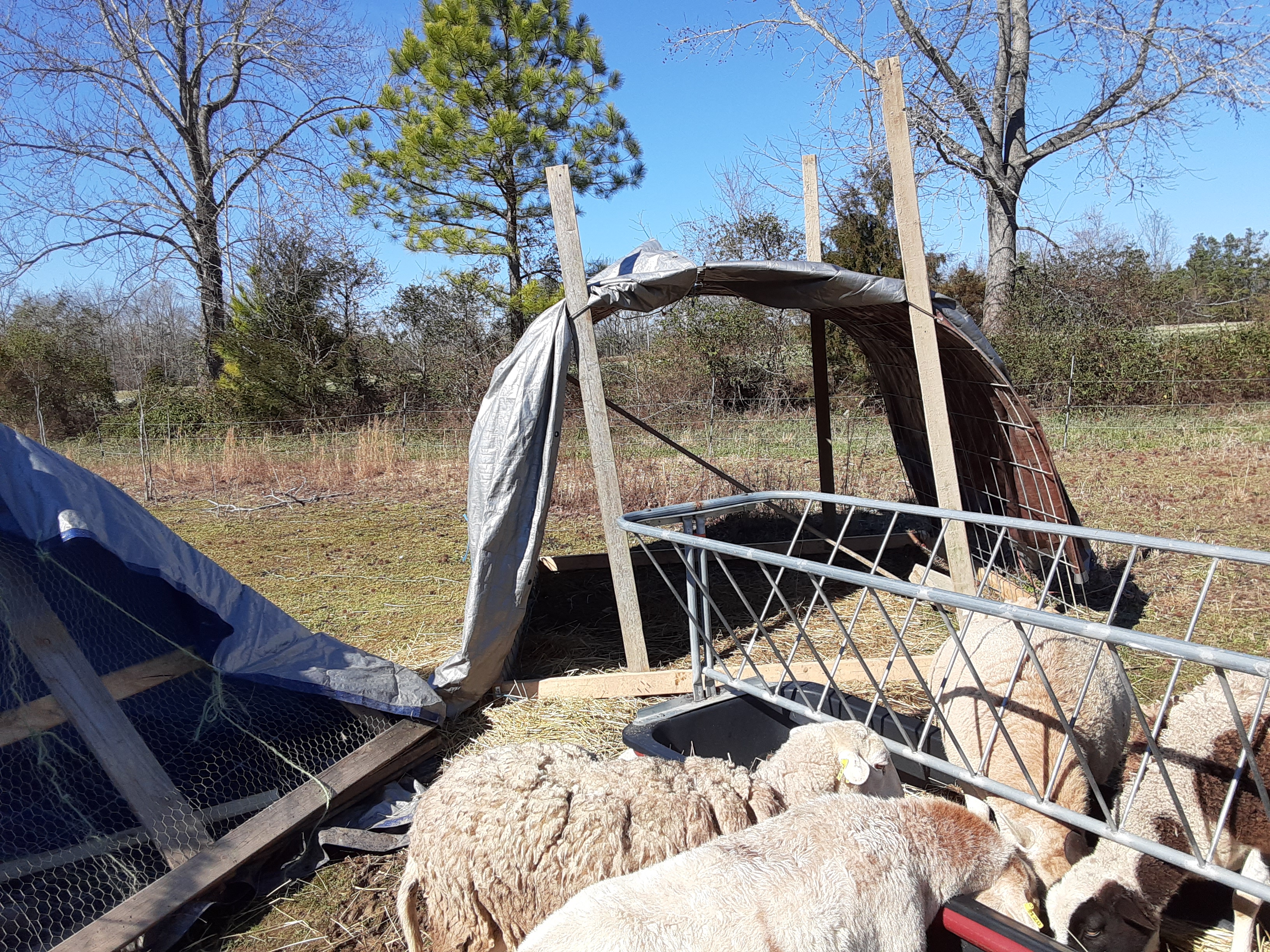 Got most of the cattle panel shelters mostly straightened. The one over the mower I literally just had to pull over like a hat.