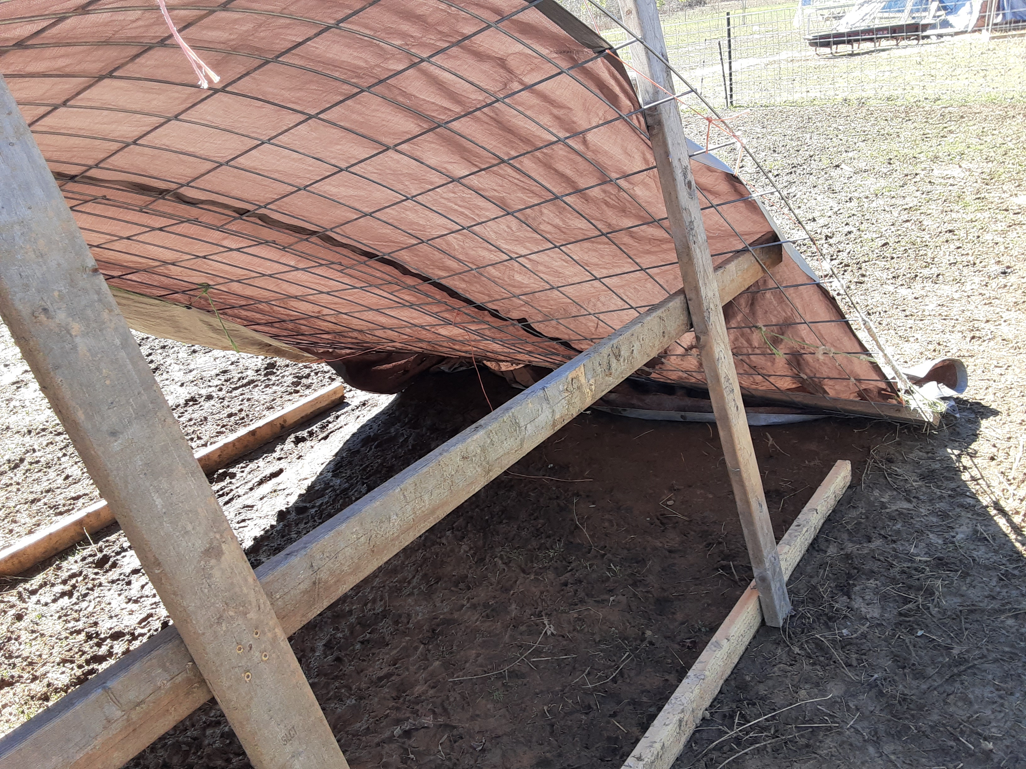 The girls frame was intact but I had to put a brace inside to help keep it straight. (Pretty sure the cattle panels are bent.) Not sure how long that is going to be left alone.