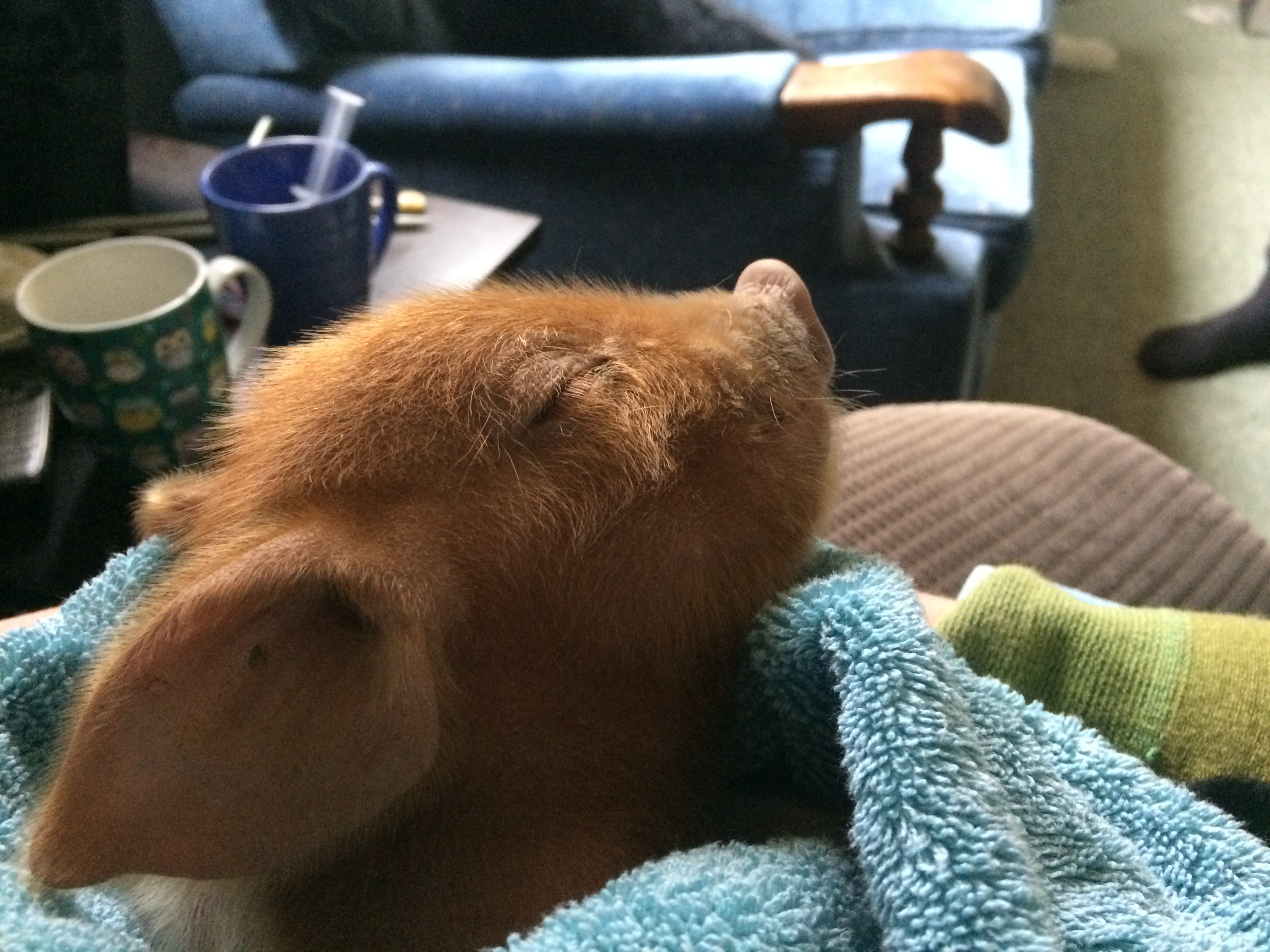 He is residing in a cat cage in front of the fire, sleeping right now but it's close to feeding time again - every 2 hours OMG I'm in for a long night.