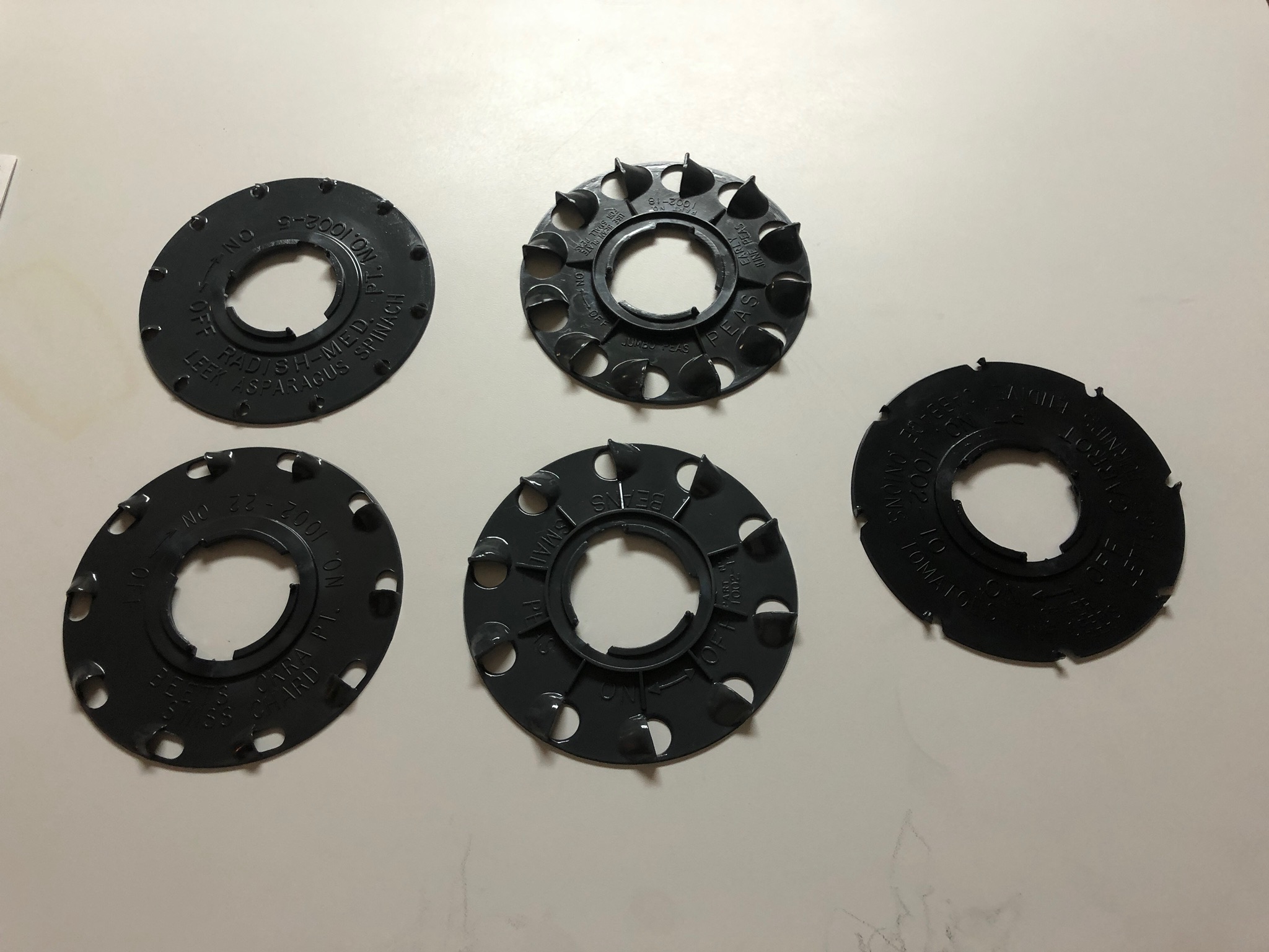 It came with all these extra seed plates. This morning it took me less than 10 minutes to plant a few rows of okra. Not sure how that’s going to turn out though. The ground was a little wet. Probably should have let it dry out some.