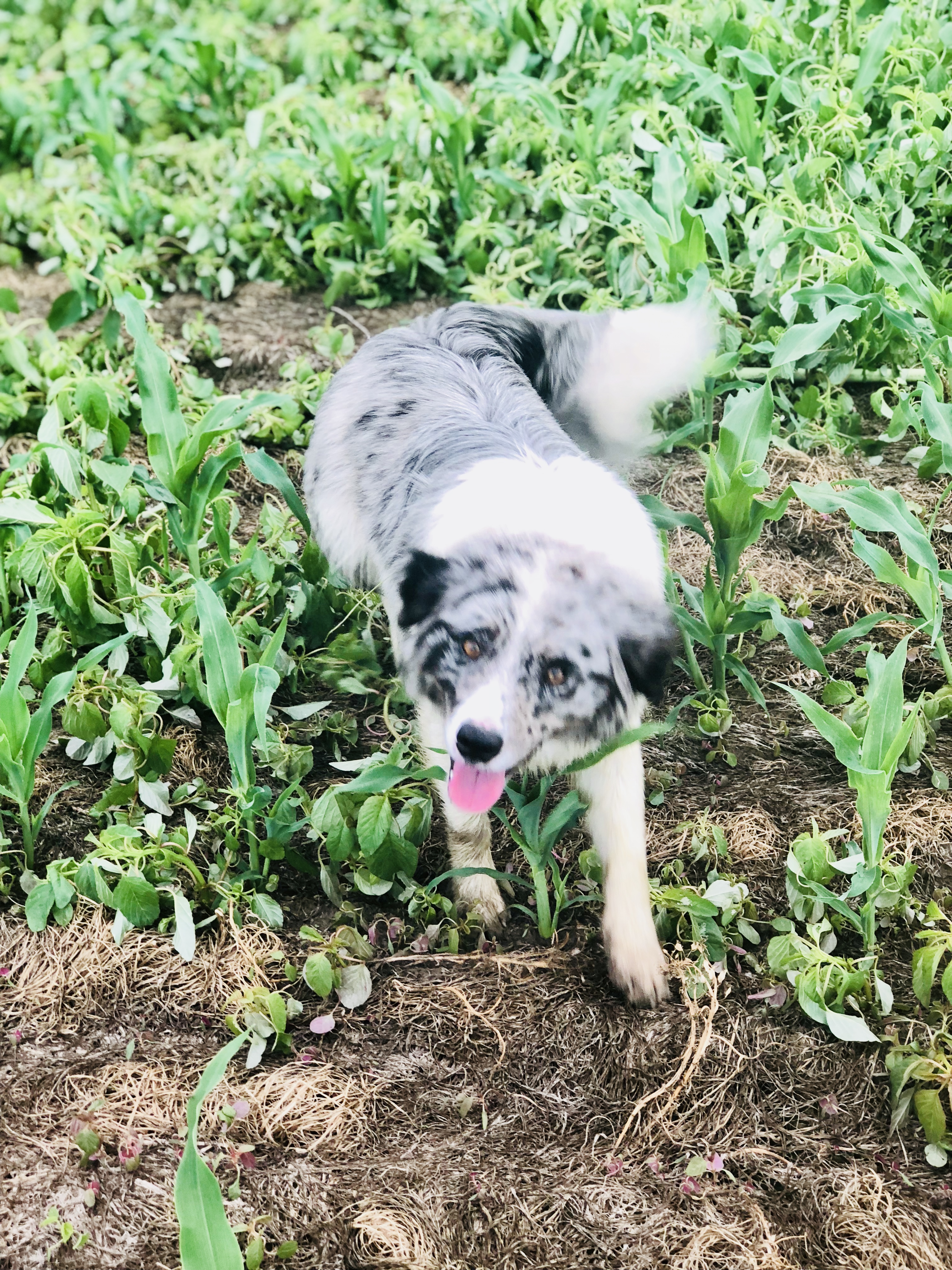 Speaking of Poot! He says, “hi”! My farmer told me to take the 4-wheeler (after he showed me how to start it and drive it) out to check on the sweet corn. Poot has to come along too and wanted to be in the picture! Hey, did Poot miss me?!? He wouldn’t let me in the house for 15 minutes after I arrived, he needed all the lovin made up that he’s been missing for the last sevvvvvveral weeks!