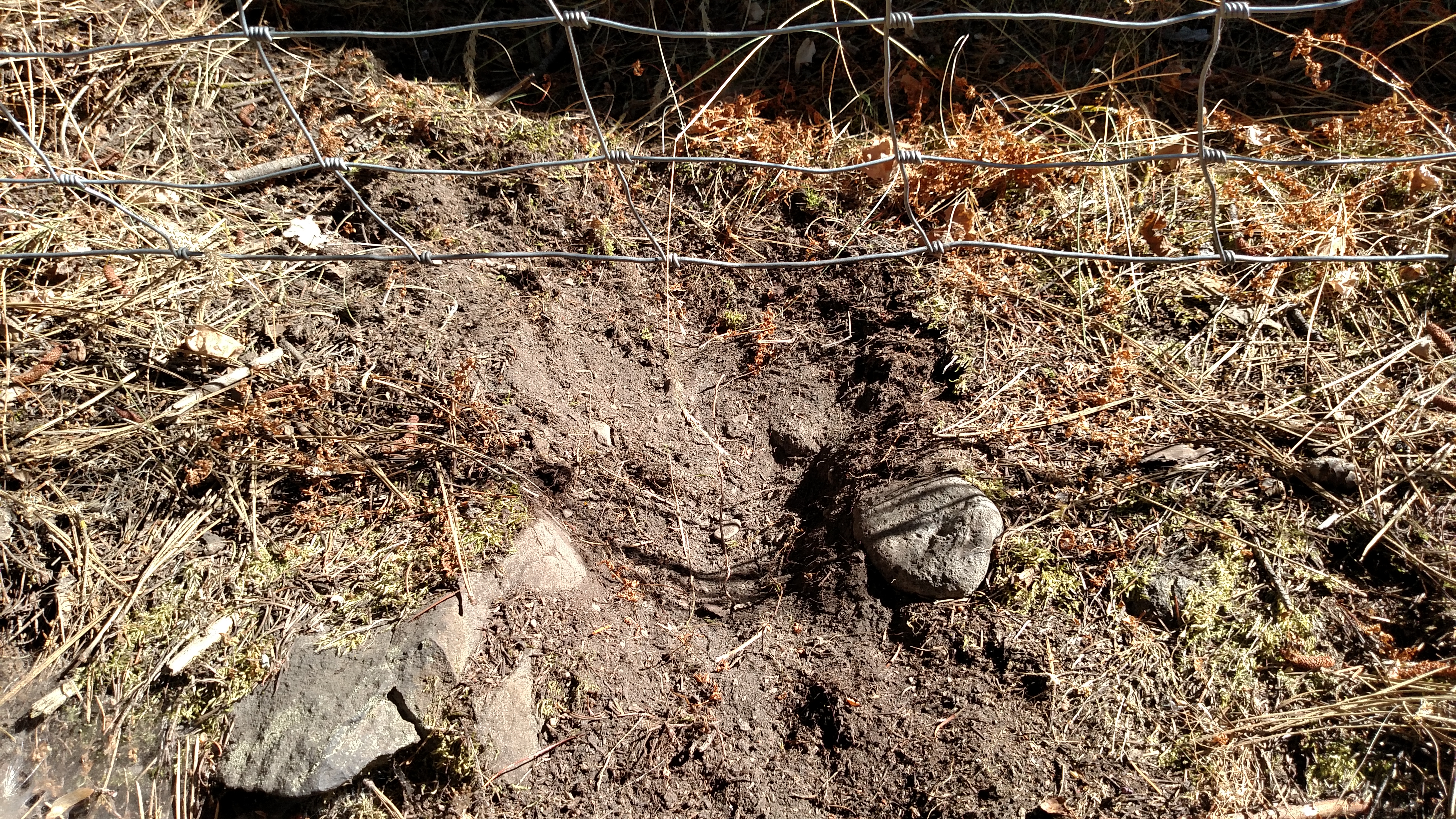 Nature seems to always find a way, just that I had it sufficiently locked out, or so I thought. No accounting for determination and sharp claws though. We have a variety of fauna around: raccoon, skunk, fox, coyote, porcupine, cougar, birds of prey, and I think badgers. The limited amount of the tracks that were visible lean in a smaller foot size so fox vary well may be it.