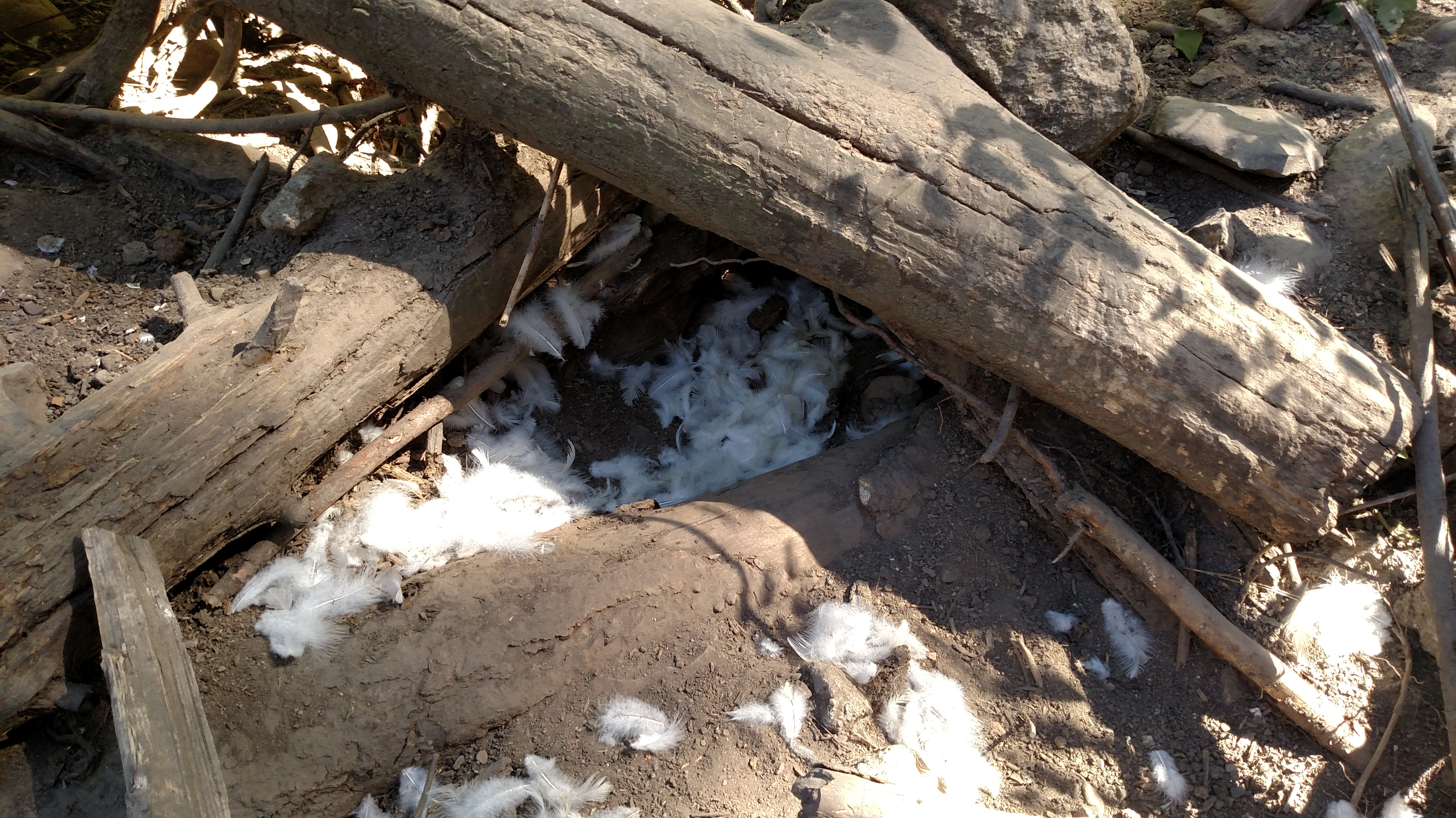 Right near the pieces of the 4th turkey was this entry point which is quite near the top of the hill. I checked the soil and still could not find any quality tracks to determine the predator.