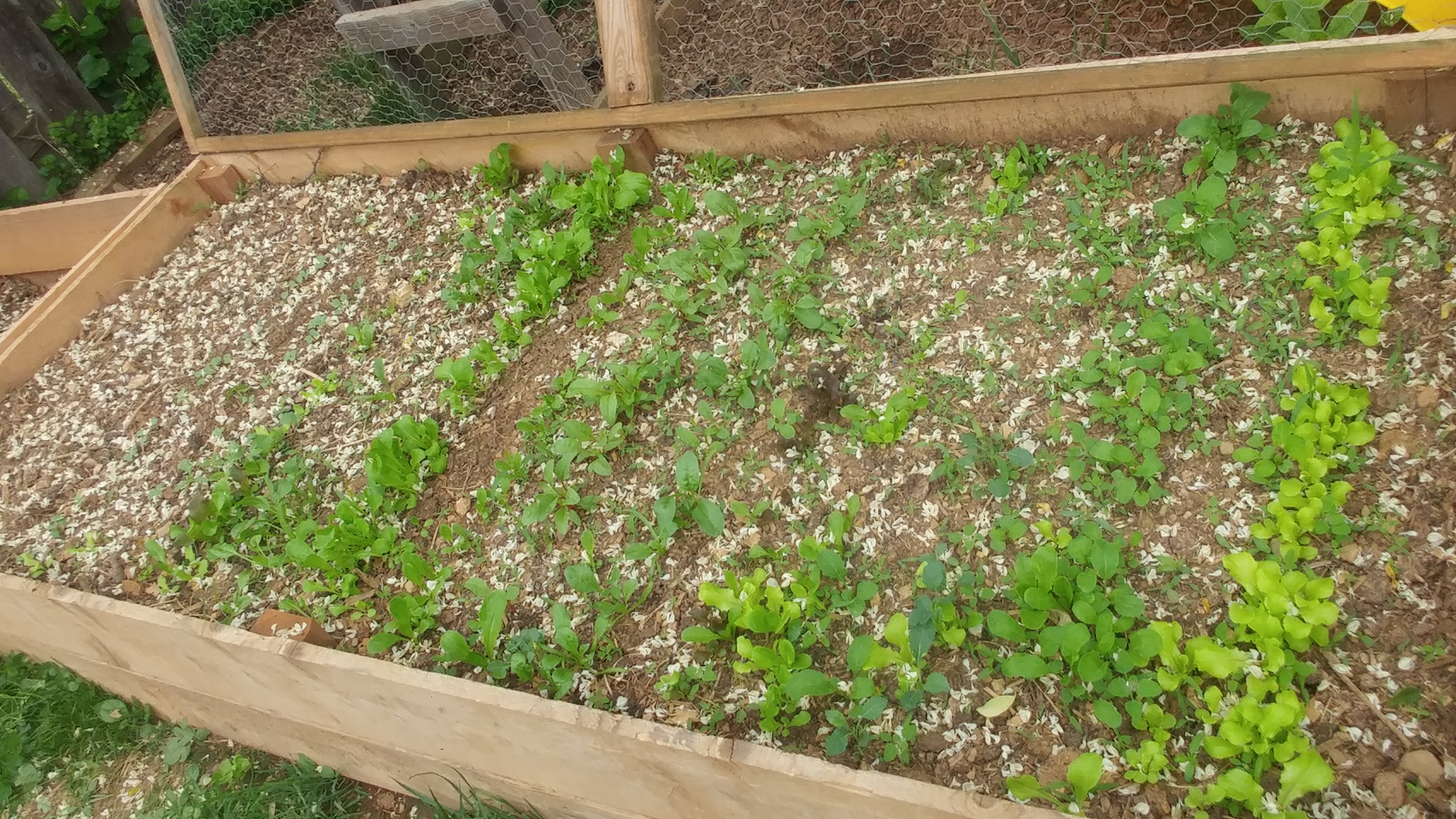 I put a layer a last years compost on top and planted 8 different types of lettuce.