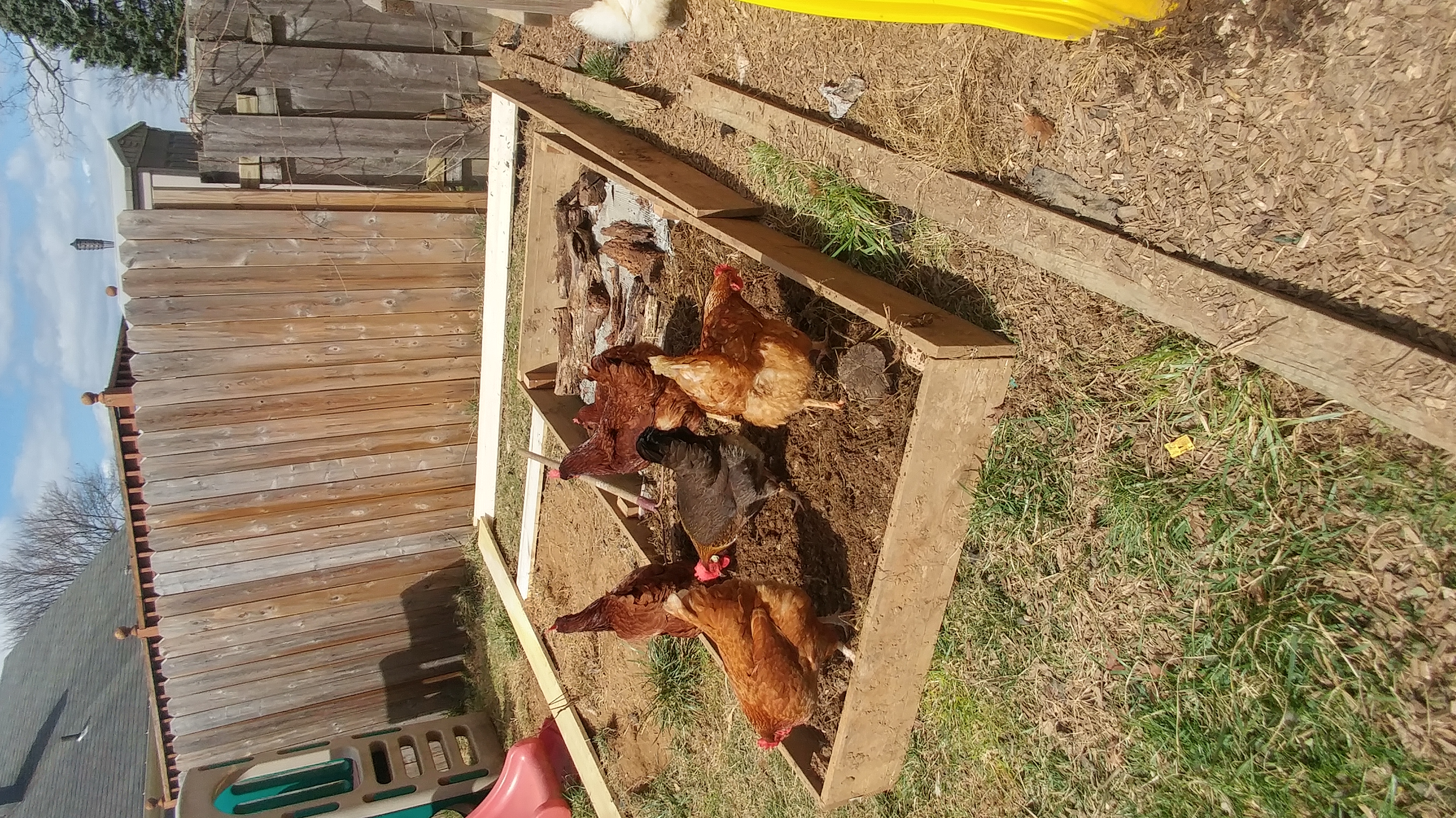 Of course the girls(chickens) insisted on helping with this part by spreading the compost.