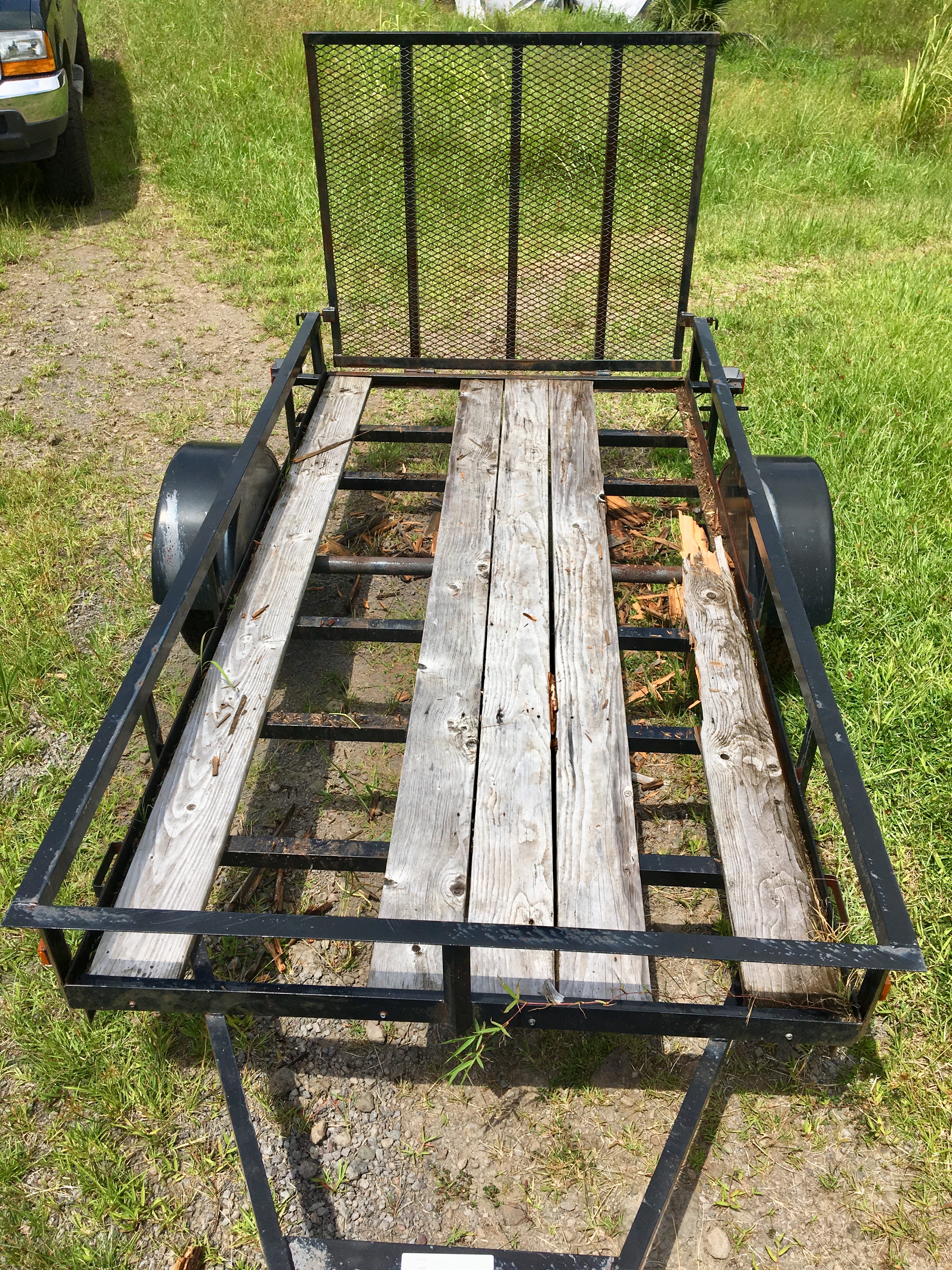 I needed to fix up the old work trailer so that we could haul bigger loads of soil, compost and mulch. This Utility trailer was originally from home depot (2 years ago) for around $1000. This is what a trailer will look like if left out in the elements in Hawaii.