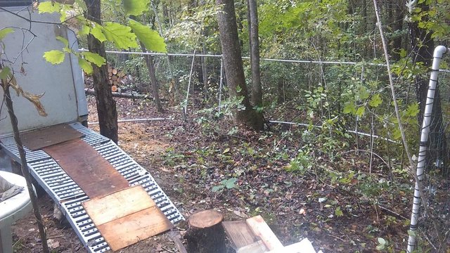 After meeting up with some of my fellow homesteaders three of them helped me move the pvc dog yard from the camping area to the shelter area where I later moved it into it's final position and manicured the land, raked the entire area, added grass seed and covered it all with used straw from the camp area.
