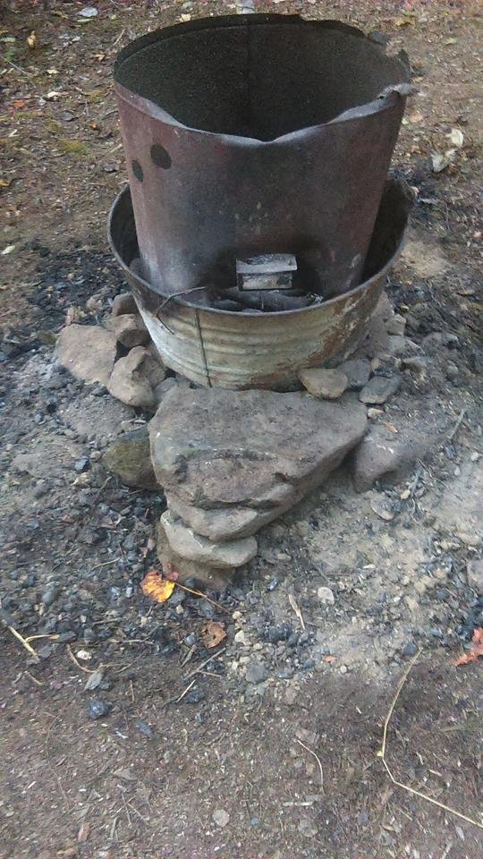 I made another fire early this morning and while getting warm near it I decided to go ahead and spend a little time getting the fire enclosure setup for making some low grade bio-char and ashes for the compost piles. Mostly I just propped up the metal parts of the fire enclosure with rocks, dug out a channel under the front of the enclosure to act as a vent and place to remove the bio-char and ashes and another channel in the rear that connects to the one in the front. It really isn't the ideal setup for making bio-char but since that fire area is also used for warmth I tried to set it up to do both functions. I later hauled some rocks with the big wagon to the fire area and wrapped the entire bottom with rocks and used a large rock to span the entirety of the front channel. I like how it came out and am considering adding more rocks and completely encasing the metal parts of the enclosure.