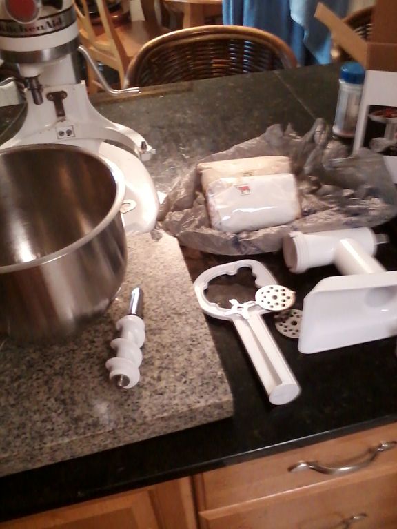 I take this preserved meat from my grass-fed cow that is stored in my icebox refrigerator (modern day freezer) and grind it in an electric meat grinder. (So happy mine is electric because it is so much less labor intensive than the hand crank one I have stuffed somewhere in my cupboard!)
