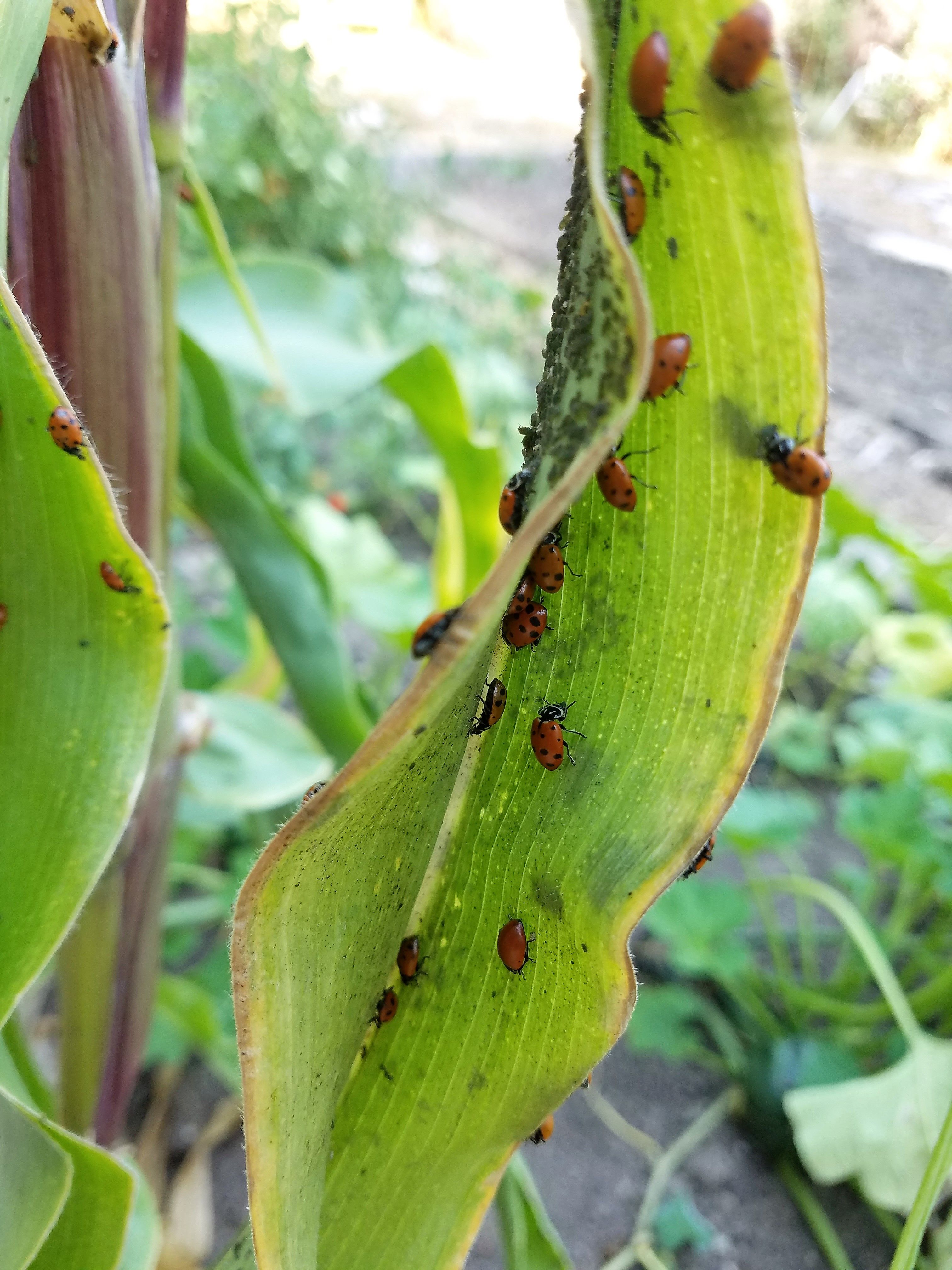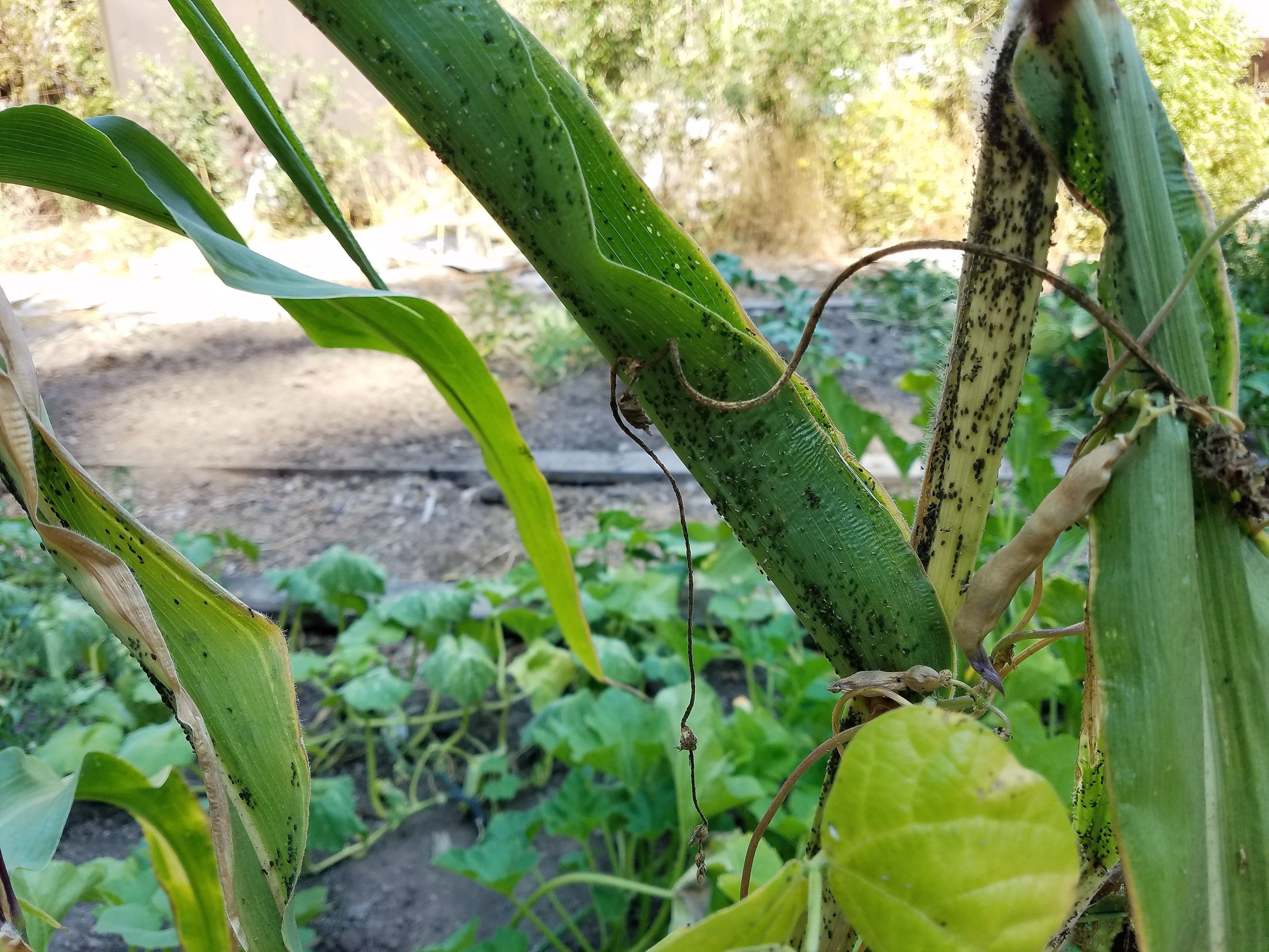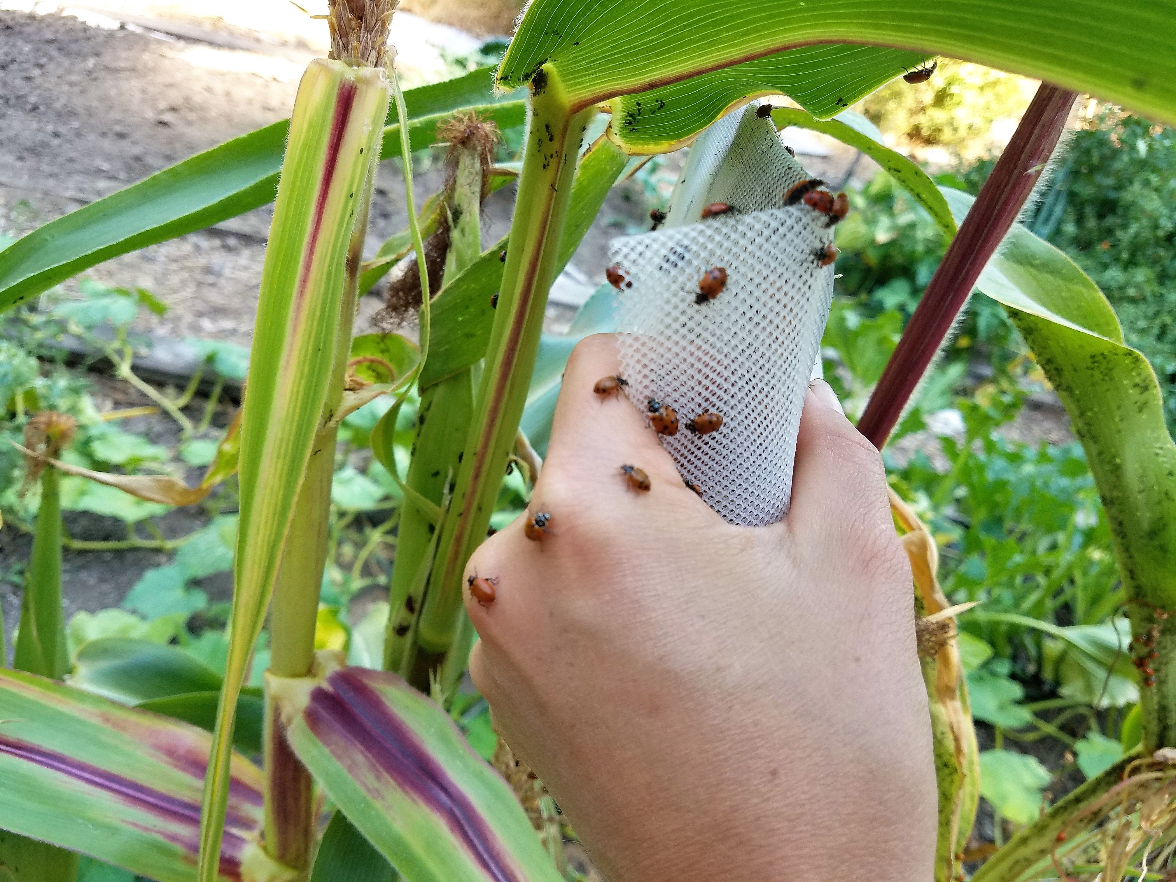 I'm strolling in my garden watering then, Bam! Black patches of aphids covering patches of my corn. Horrible, evil ants herding them. A whole ranch had formed under my nose. It was me against thousands. The horror!