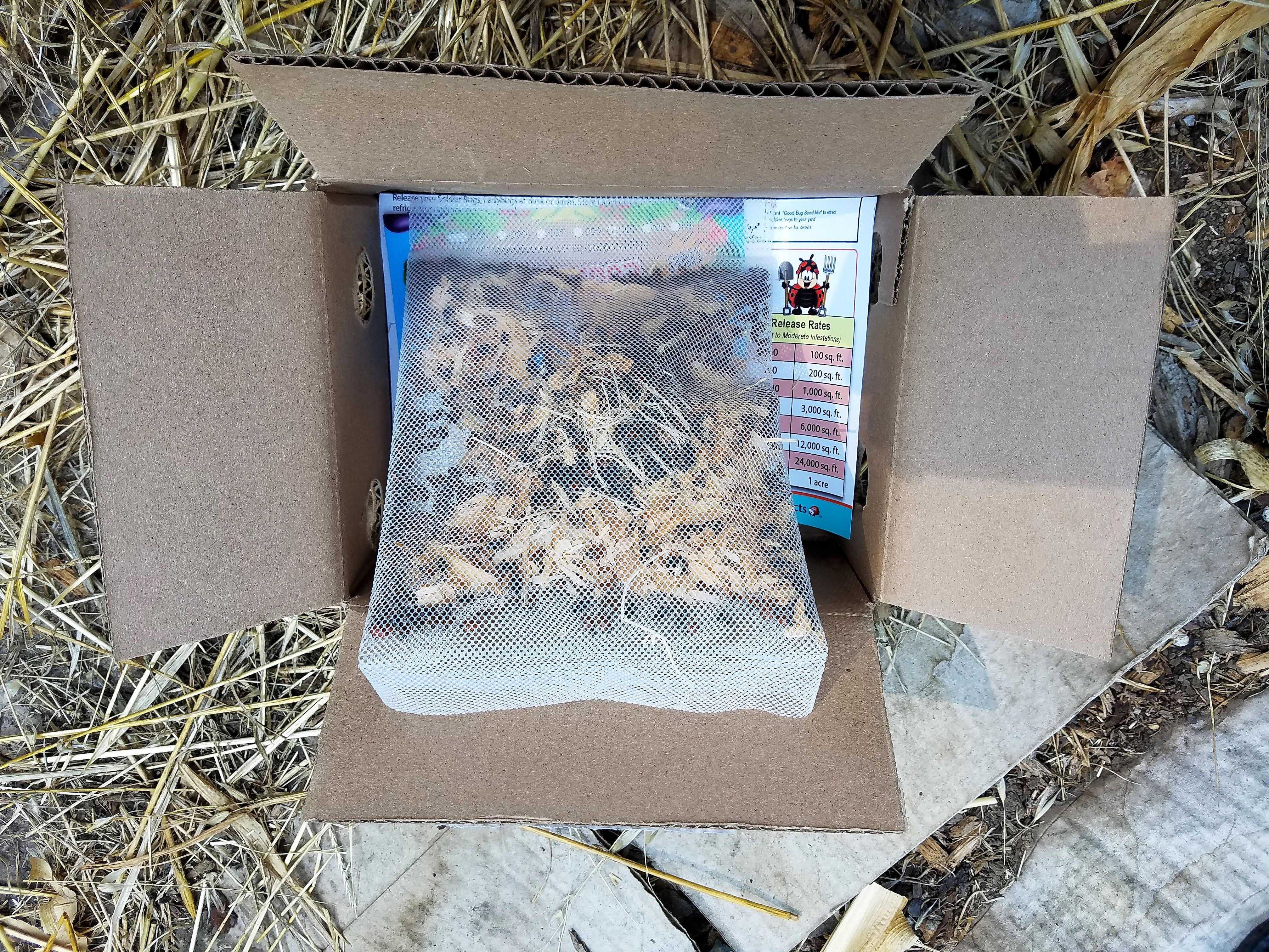 They arrived the next day, I opened the box to see a whole bunch of sweet ladybugs looking out.