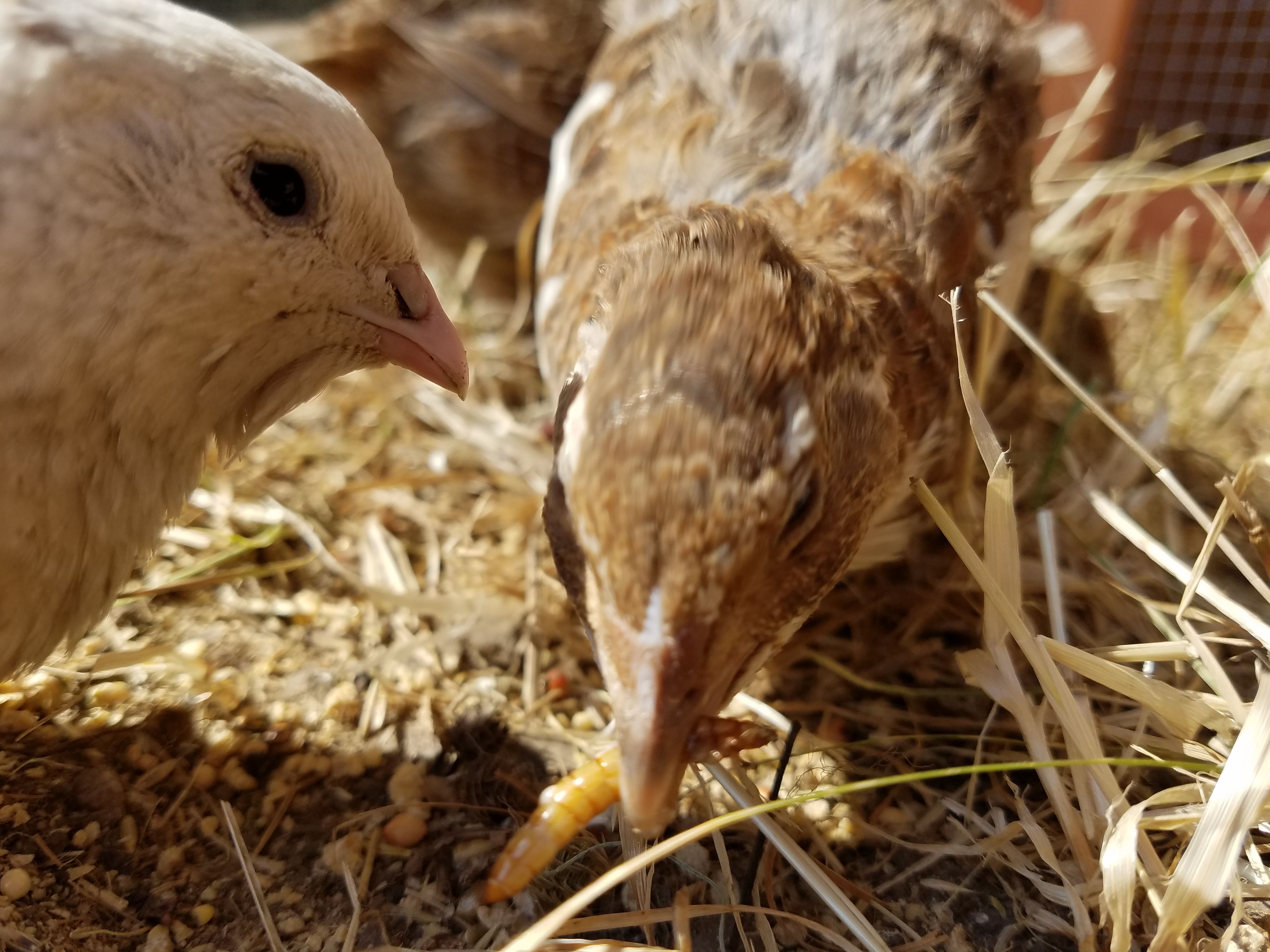 My quail used to go crazy for the little wriggly mealworms. They would almost bounce up in the air to grab them from my hand 😊