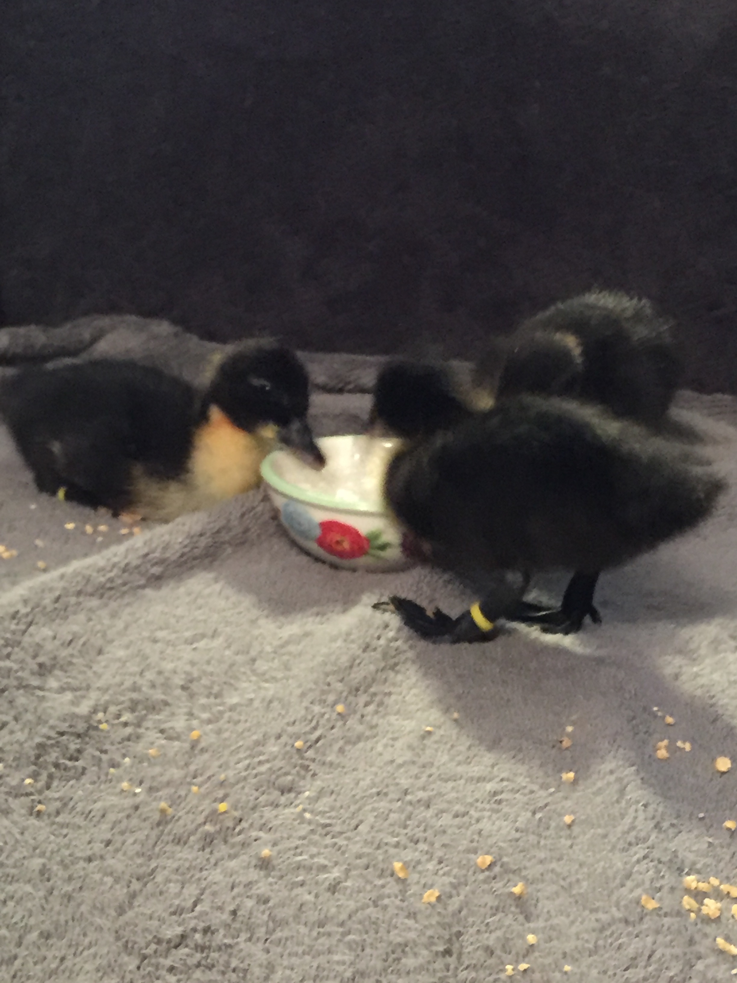 I see they're still cute! The first time we got ducks we got two, and they were free range in the house most of the time. They bonded really well with us. They would sleep on my clothes in the bathroom when I was taking a shower, and sit on my feet when I was cooking. It was adorable. We've never been able to reproduce that kind of sweetness. I don't know if it's because we only had two the first time.