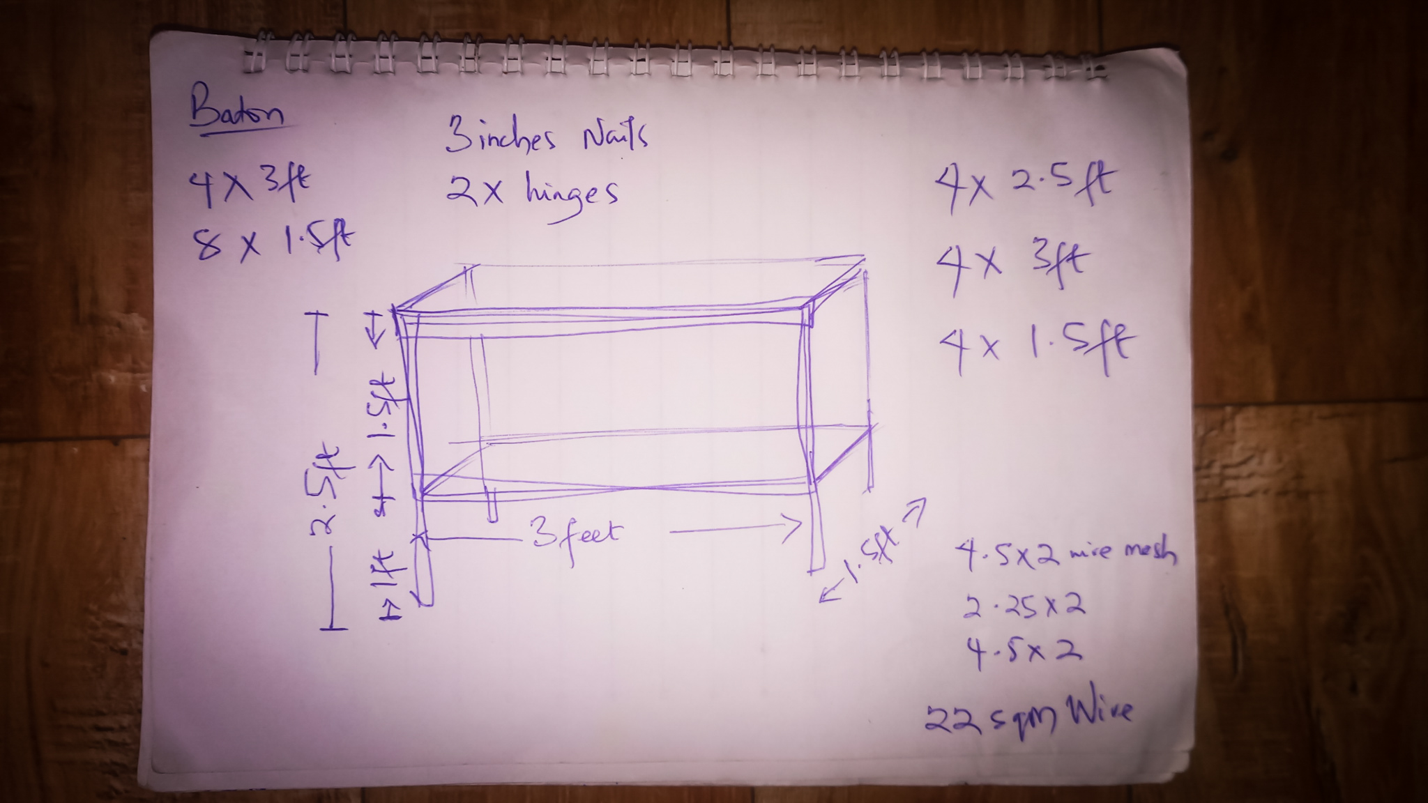 I figured with my zero carpentry skills I will just make a 4-legged wooden cage with 1/2 inch wire mesh around it, to prevent the chicks from going out, and protect them from external preys. As I had no cutting tools I thought it necessary to have them all cut at the market. That meant I had to be definite on how many of what measurement of wood I needed. You can see that from plan above. With that I was off to the wood market just two miles away. We call those "timber markets" in Nigeria.
