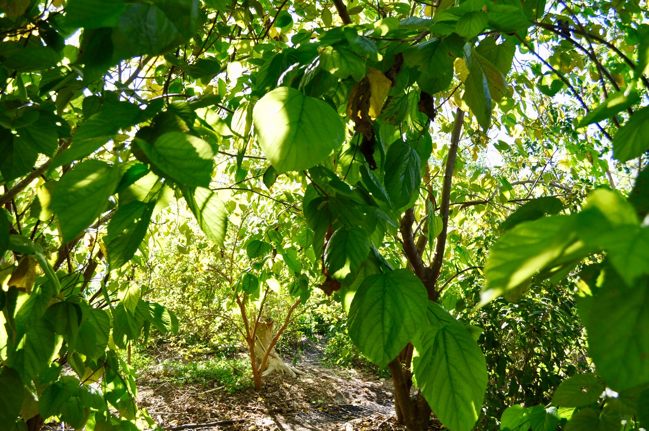 This layer is filled with the largest and often longest lived species and often takes the longest to fill out. The Mulberries created a lot of shade.