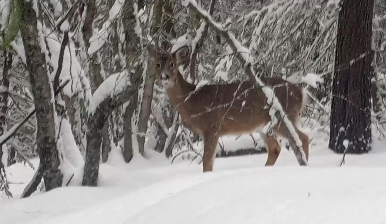 I spooked this doe and her yearling from where they were bedding down under some trees while gathering firewood.