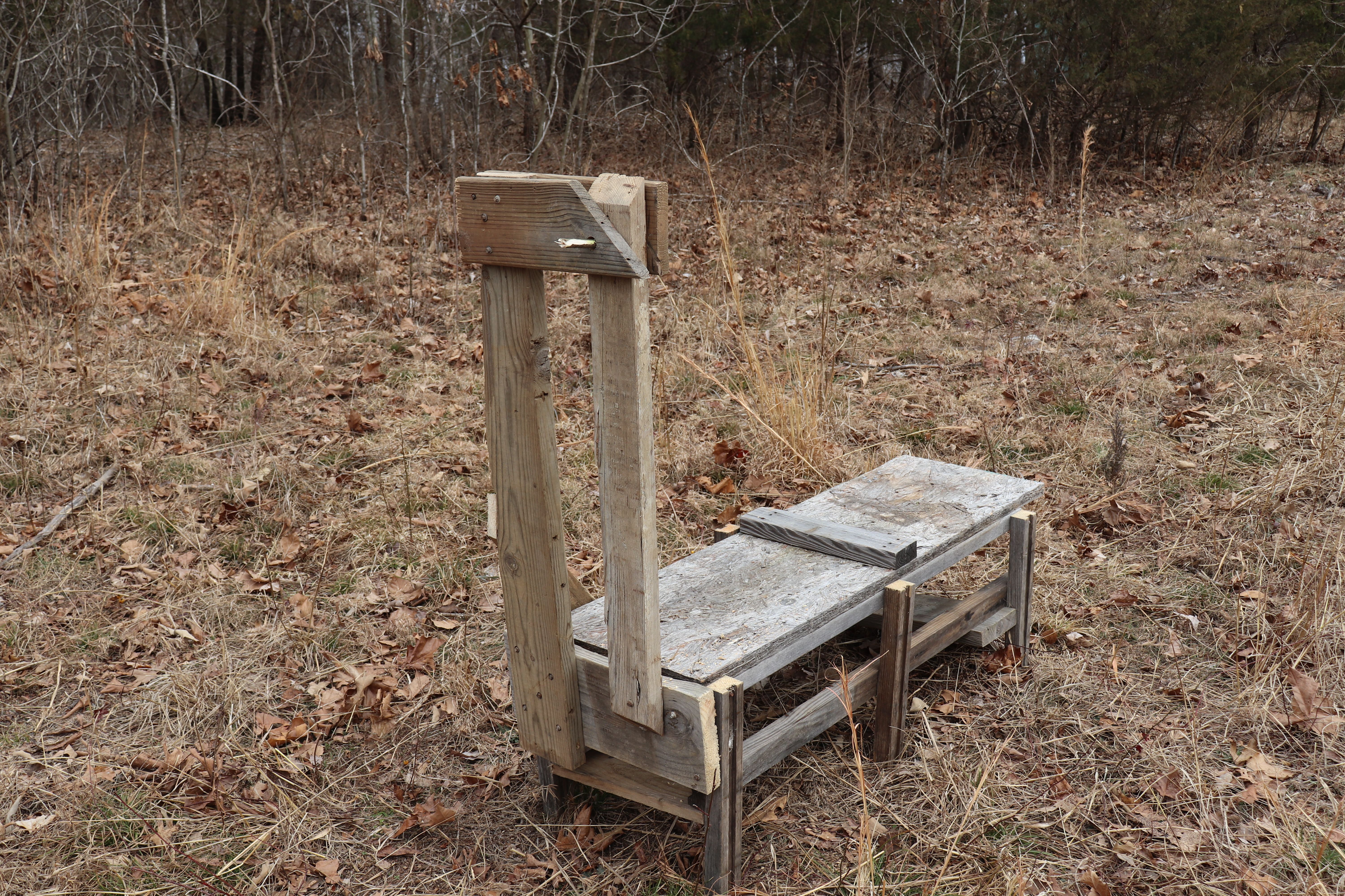 Then I began adding the legs, and reinforcing them for maximum stability. Once the platform and legs were taken care of, I just needed the head mount.
