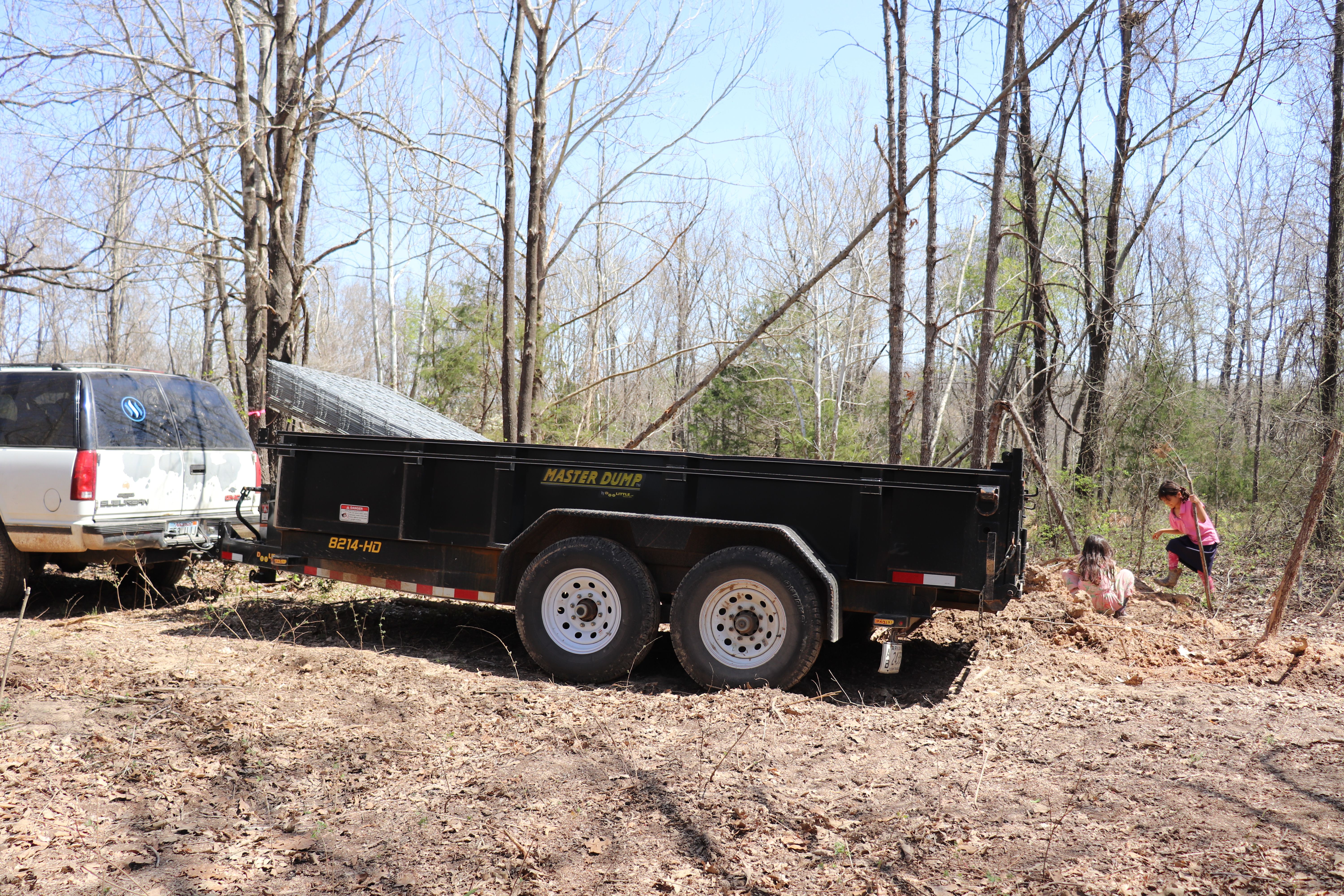 Recently I took a trip to town to try to pick up a load of cattle panels. Unfortunately, the store was sold out. Not wanting to go home empty handed, I drove to the next state over and picked up a load there. I had the dump trailer that I borrowed from @bluerthangreen, so I could handle a heavy load this big.
