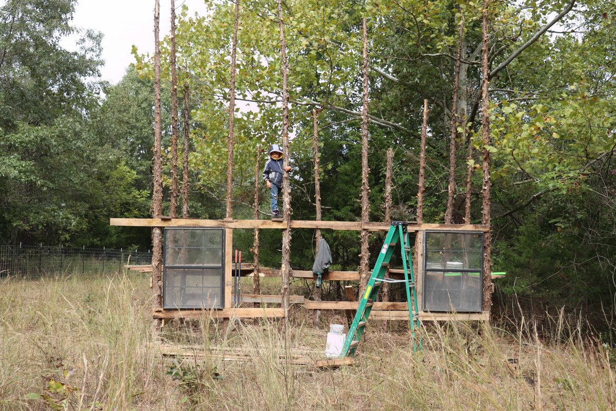 From cutting down my own cedar trees for the poles to figuring out how to put this together (since I have no blueprint or real plans outside my side), it's been an adventure so far and it looks like it'll work.