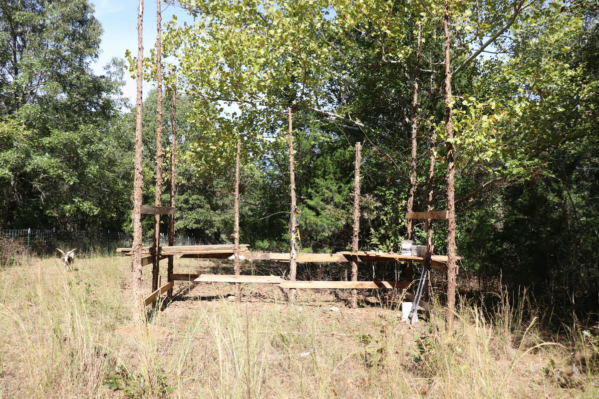 Good luck with your build! Love the shot with the animals standing around wondering what you're building for them! The milking parlor, that's for goats milk??